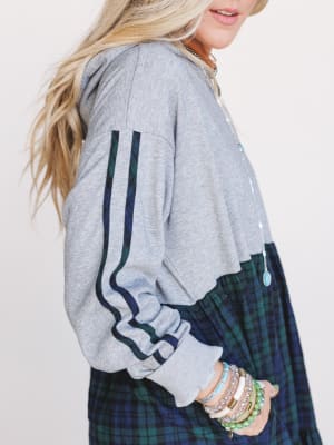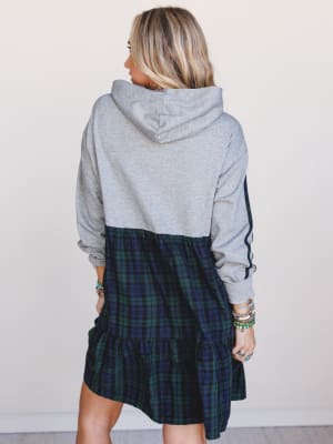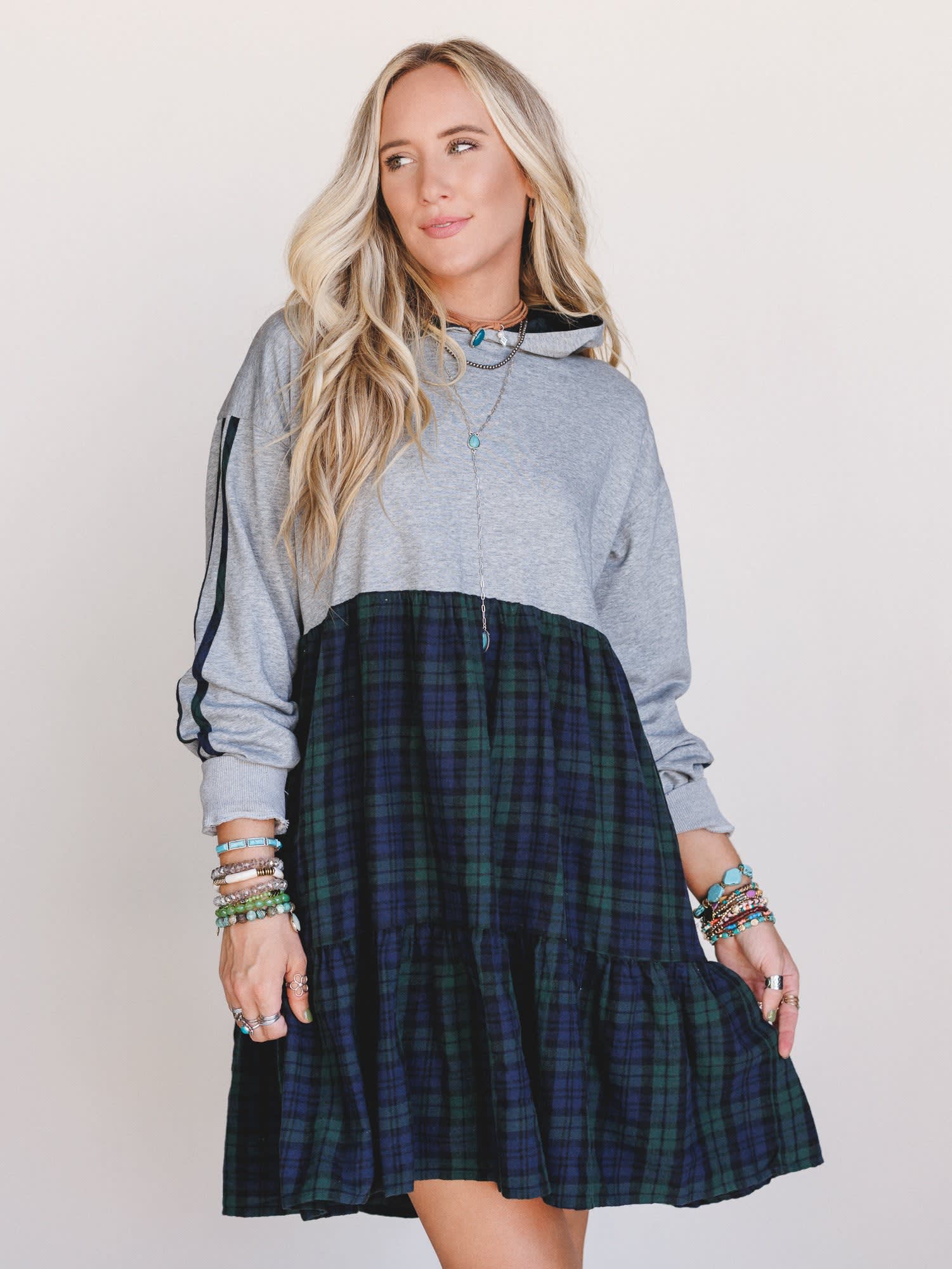 Get an A+ in cozy-cool style with the Honor Roll Plaid Mix Dress. This playful mix of sweatshirt comfort and plaid charm makes it the perfect dress for laid-back days that still deserve a little extra flair.