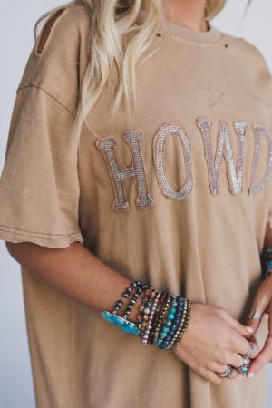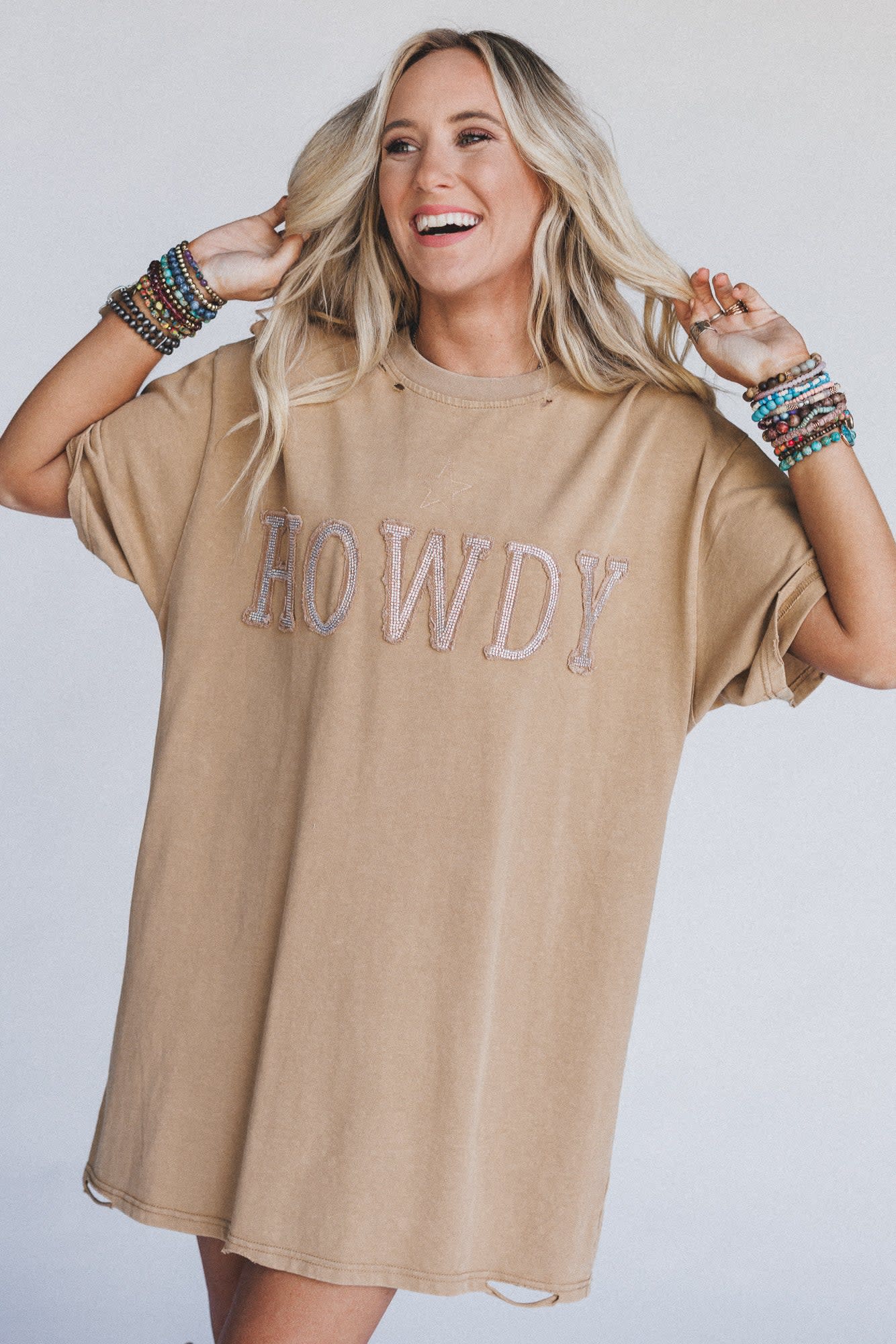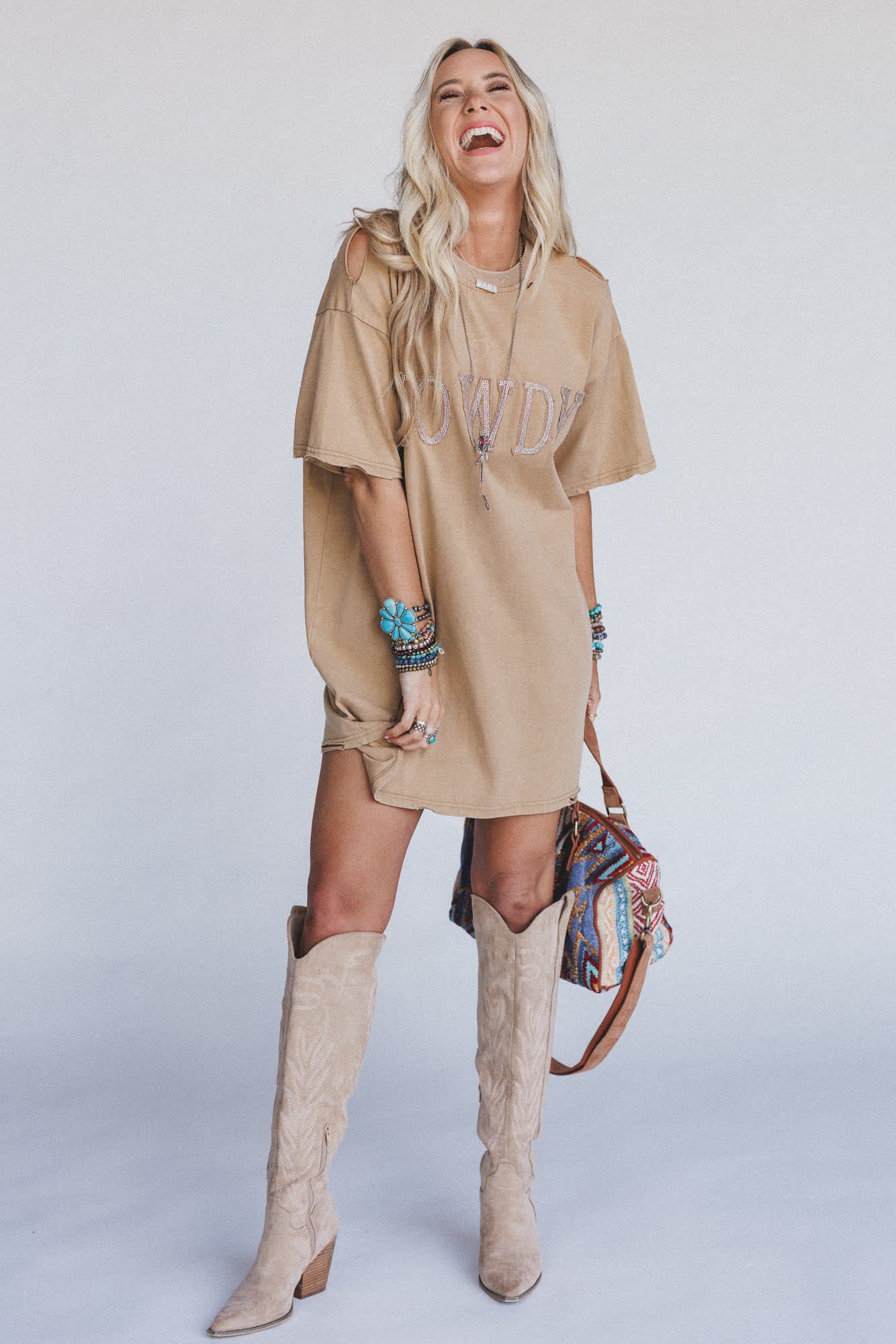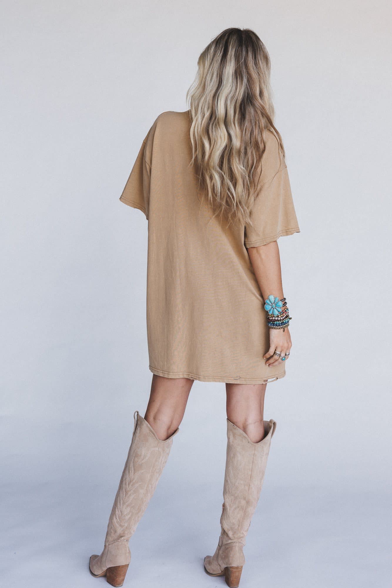 Wear this boho tee dress with cowboy boots and a denim jacket.