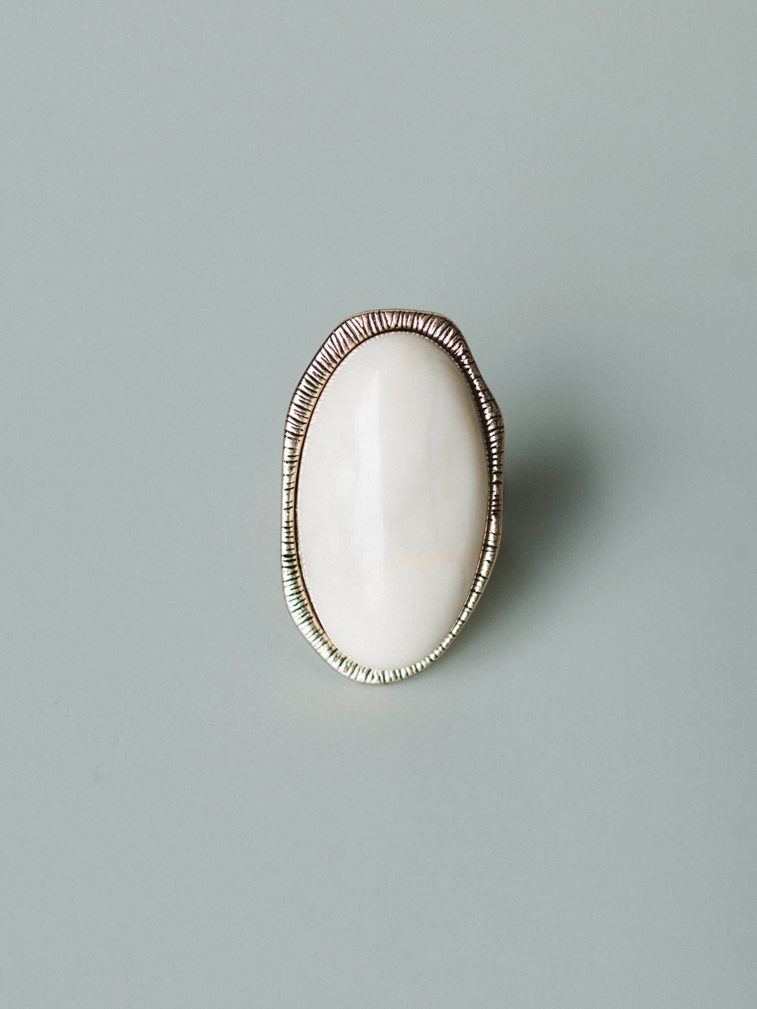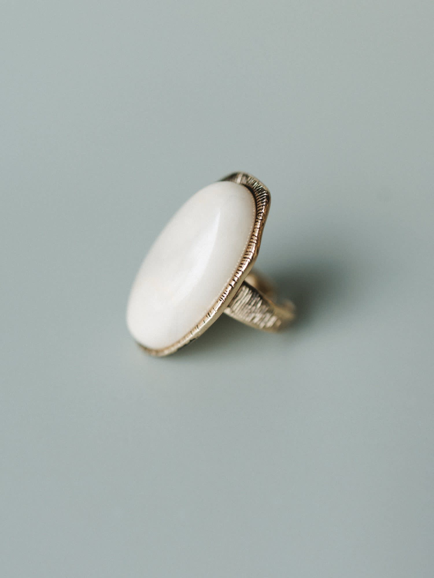 Statement white moonstone ring with a bold oval stone for an eye-catching boho jewelry look