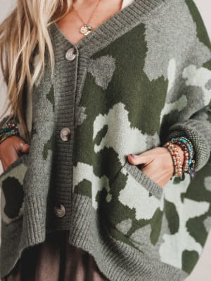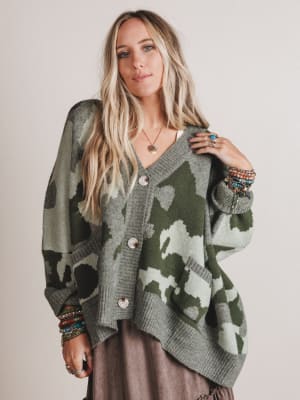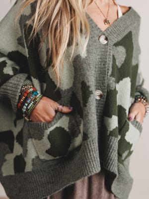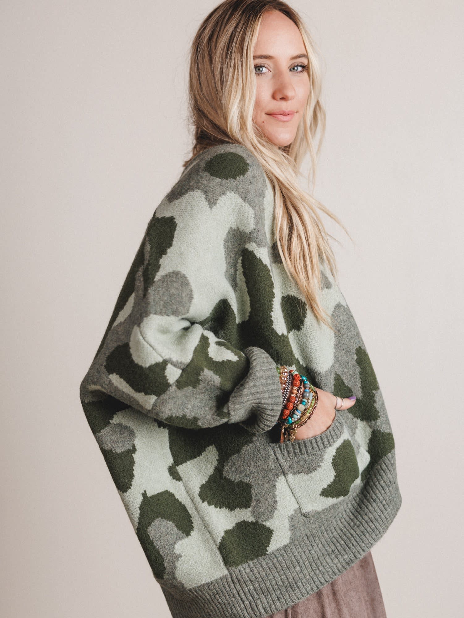 Cozy meets cool in the Into The Dusk Cardigan, a slouchy statement layer made for laid-back mornings and weekend wanderings. The earthy camo-inspired print gives it a bold edge, while the soft knit and oversized fit keep things effortlessly relaxed.