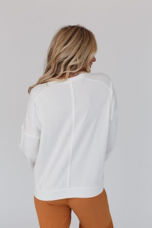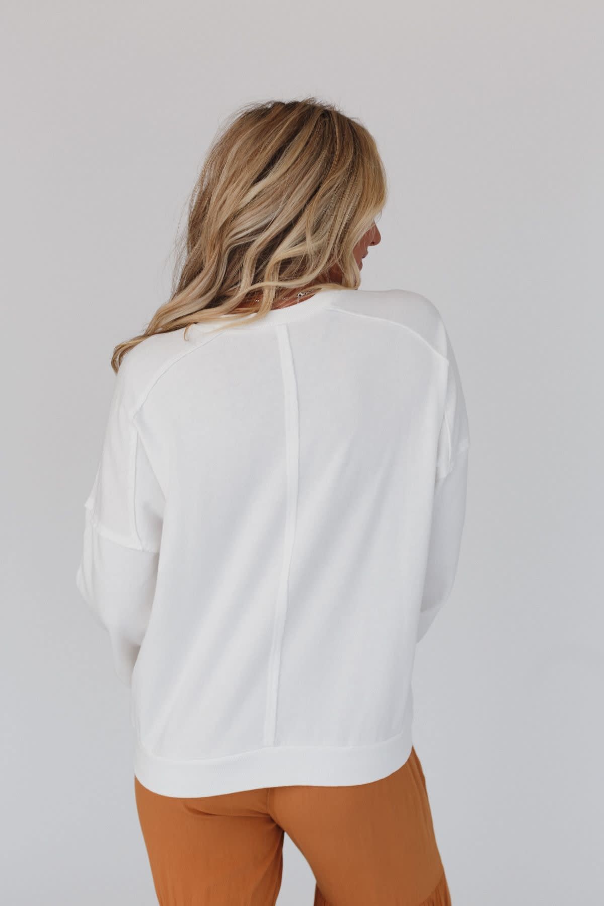 - Classic crew neckline with dropped shoulders and loose long sleeves