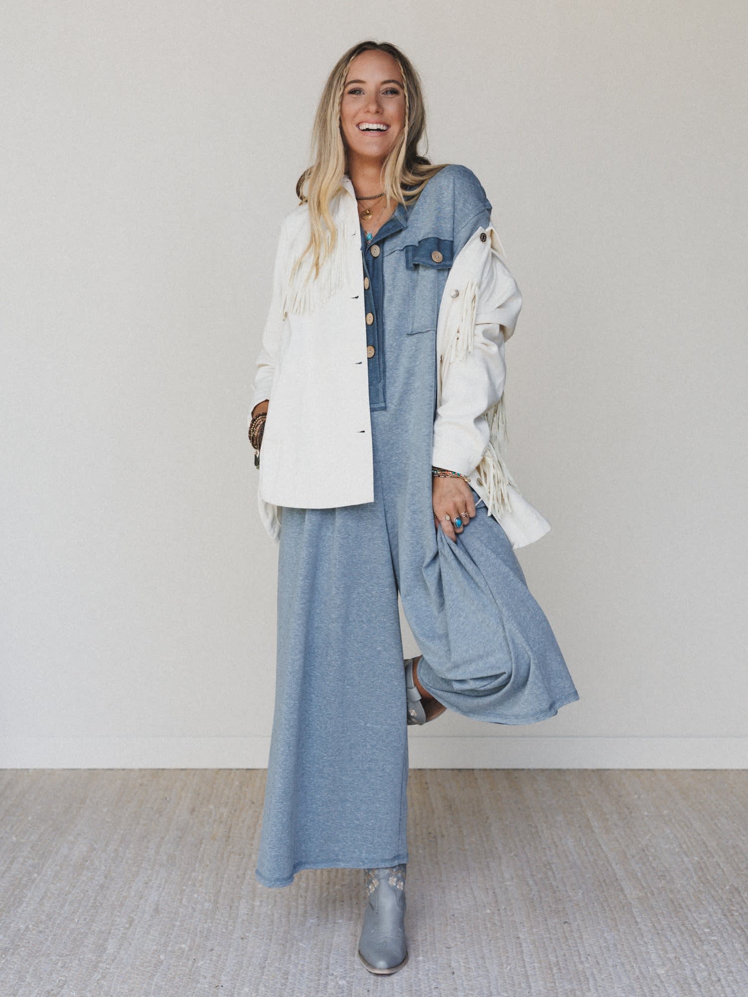 When comfort meets cowgirl charm, you get the Jodi Jackson 2 Piece Bundle—a cozy, western-inspired boho outfit that’s ready to roam. Soft, easy, and styled with fringe, this look transitions from laid-back lounge days to country concerts and everything in between.