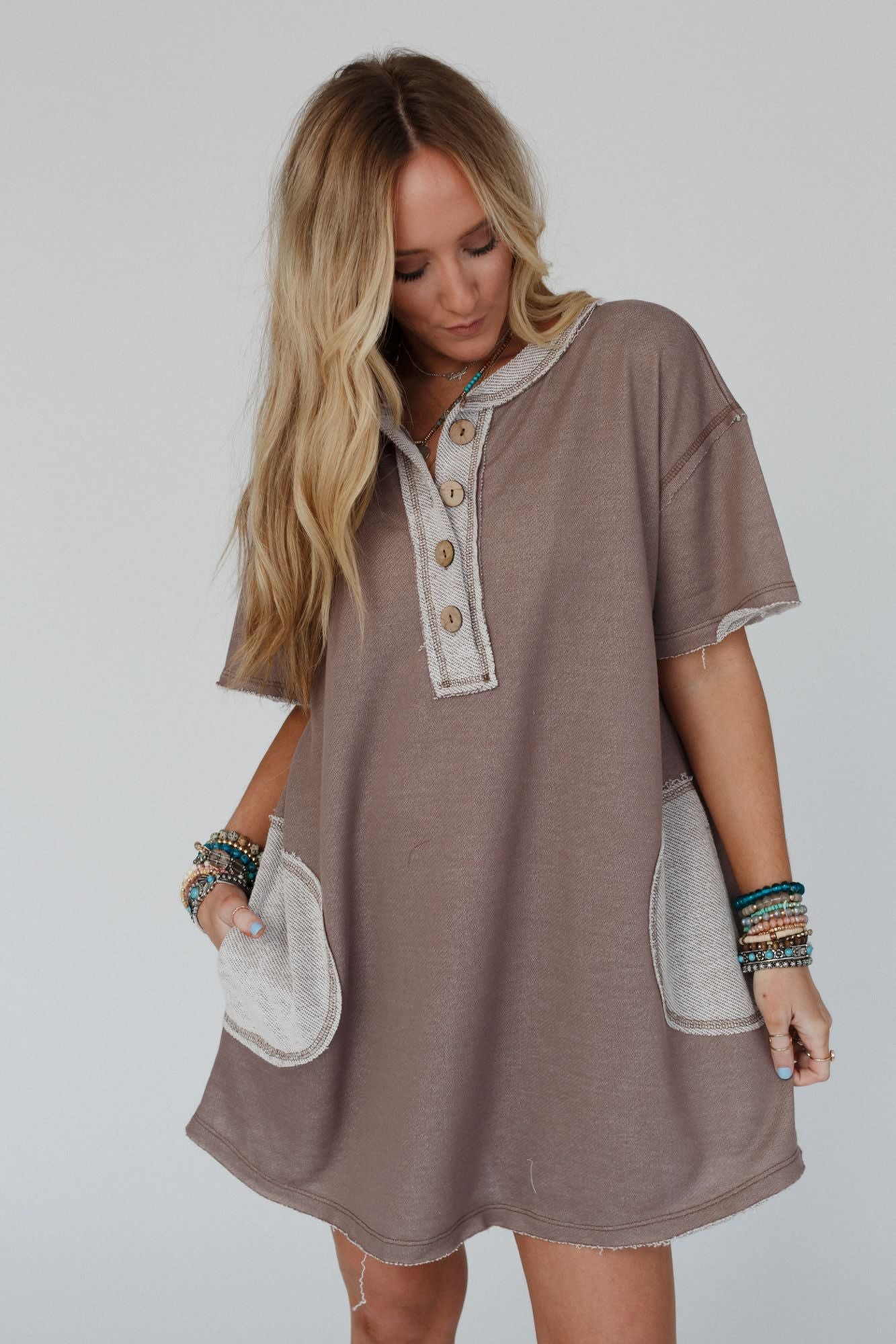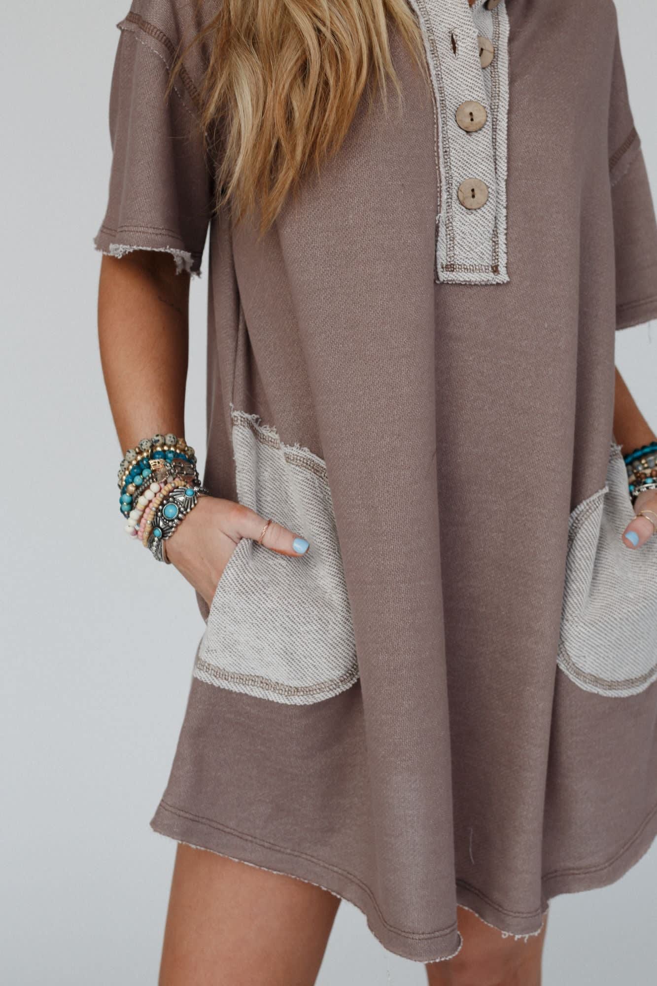 • So cozy and comfortable terry knit fabric (Contrast pile side of the fabric is used along the neckline and pockets for cute boho details)