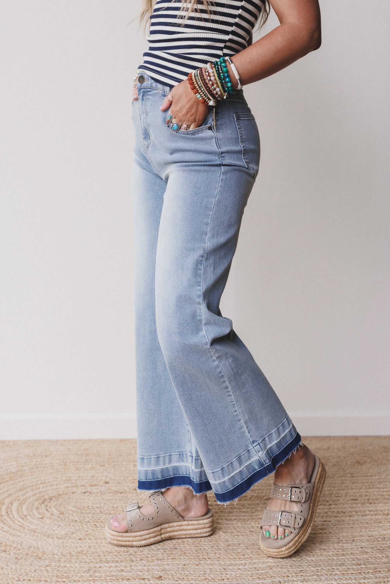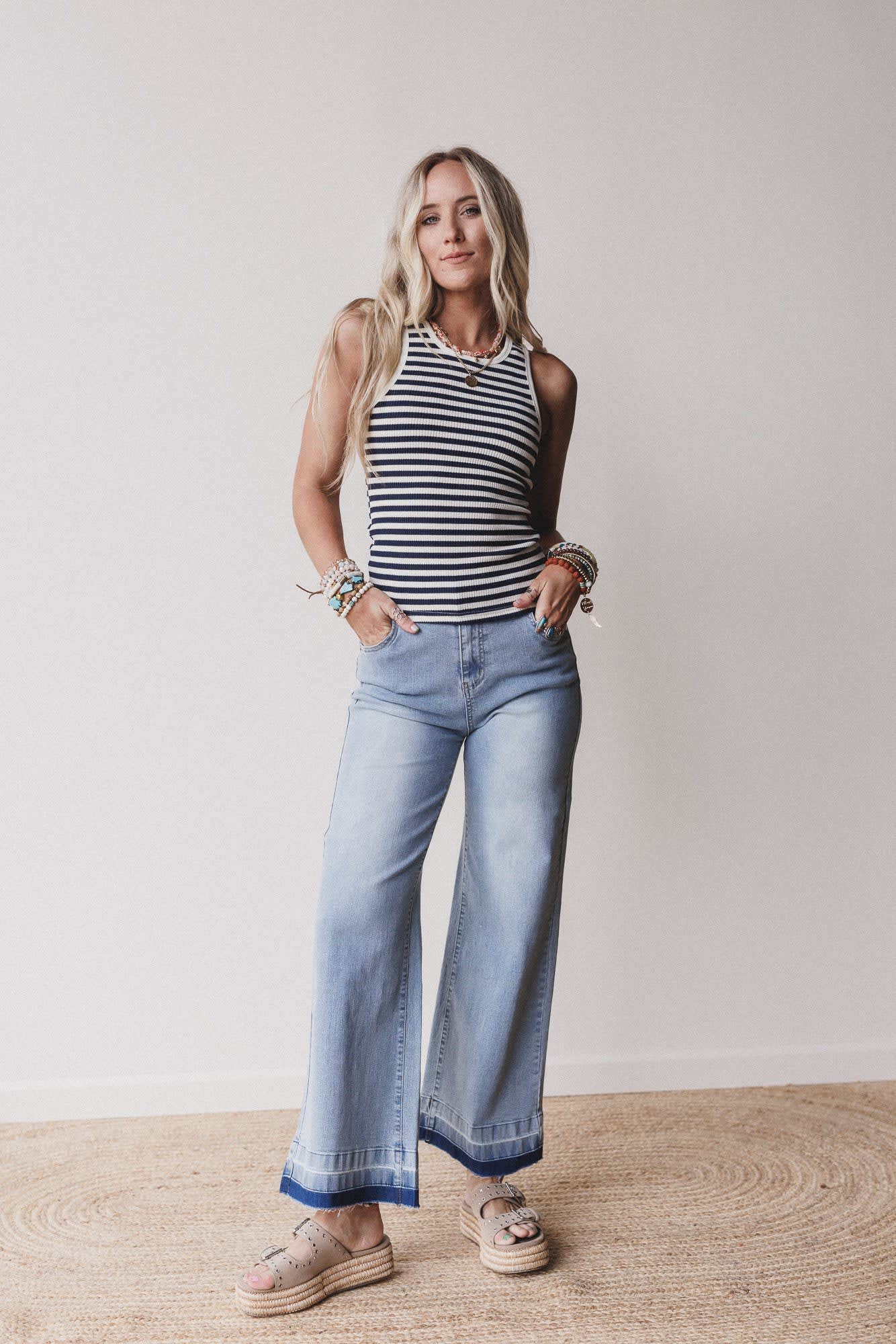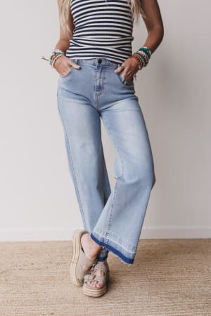 These wide leg jeans are a staple that goes with any top in your closet, especially babydoll tops.Β