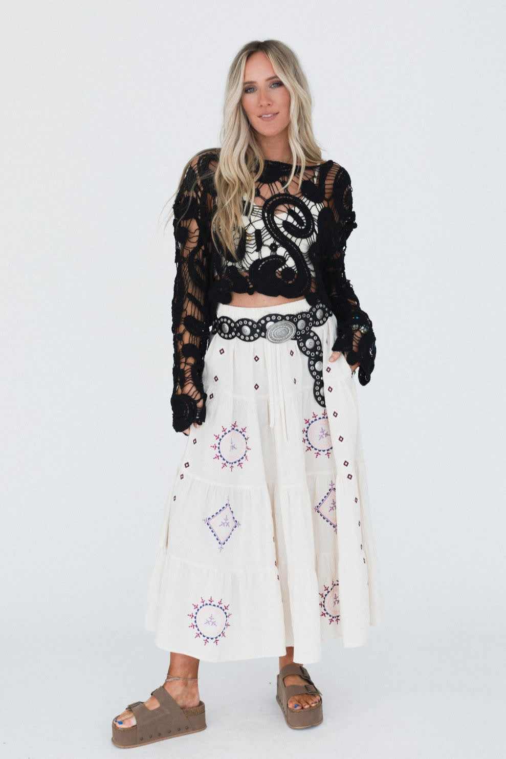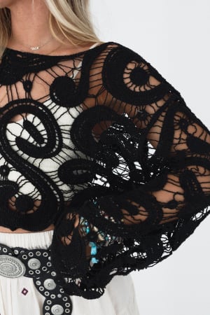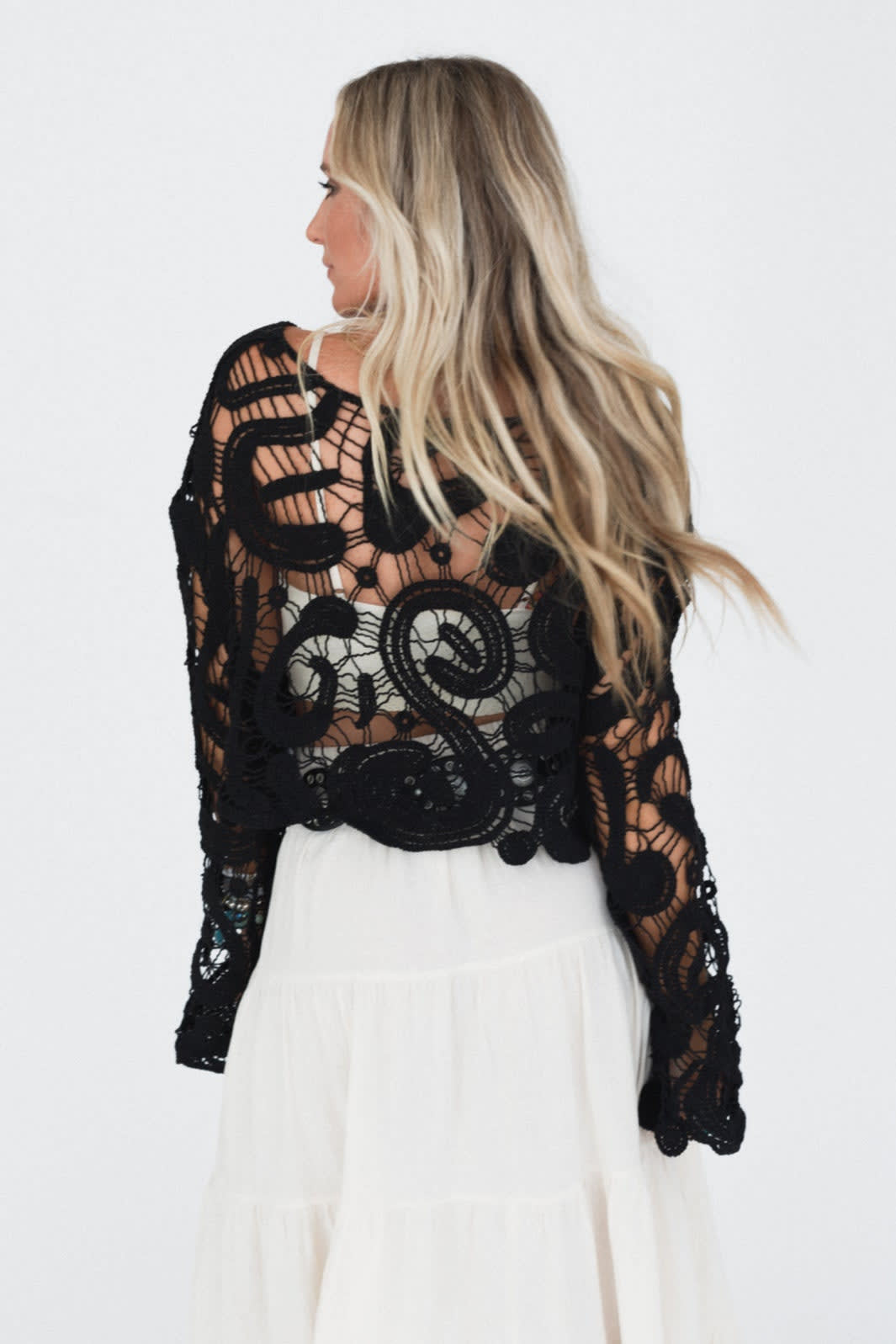 All you need with this boho crochet sweater is a cami or brami and jeans for a simply elegant look.