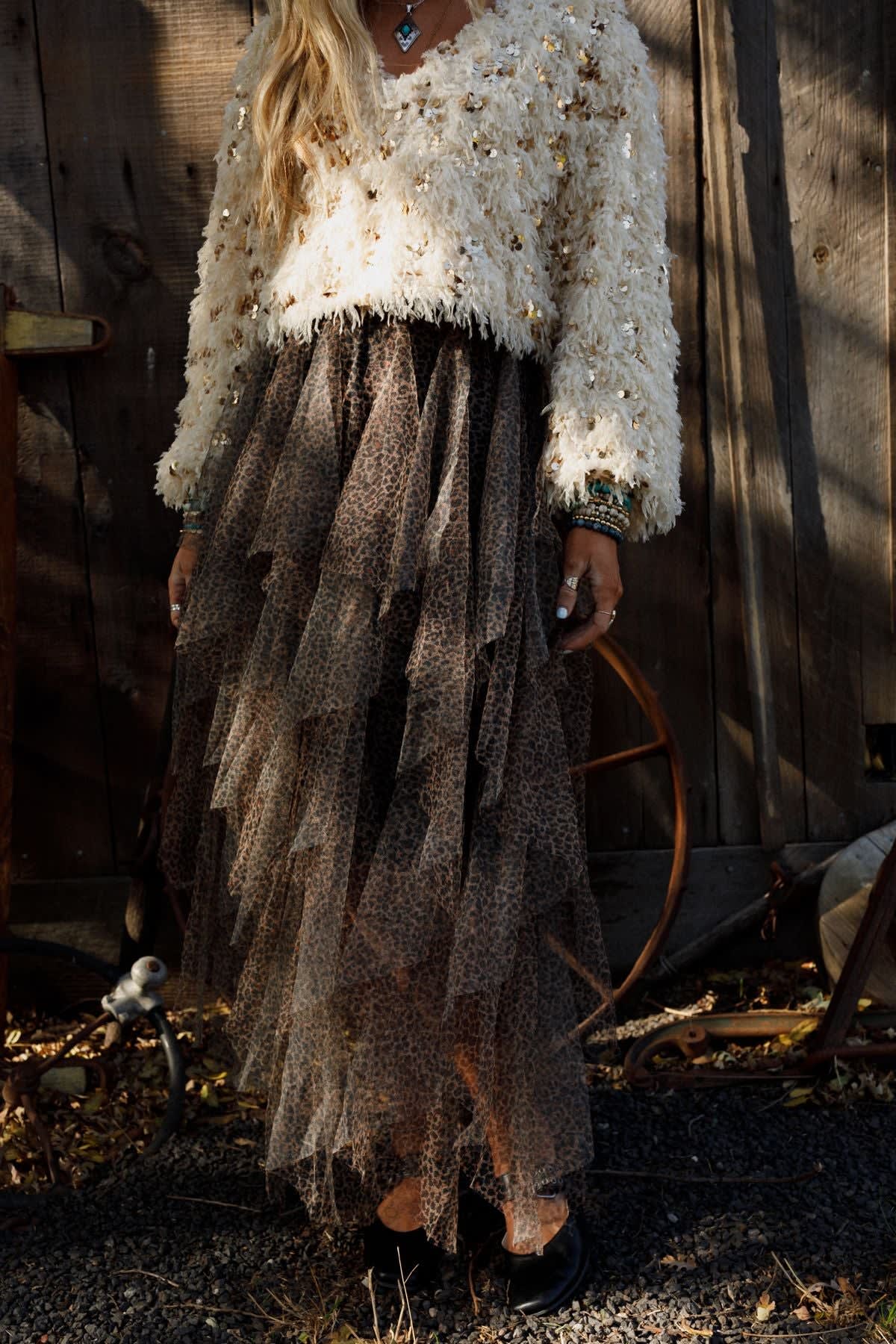 Let your boho style go wild in the Jungle Bella Ballerina Skirt- with its animalΒ print and playful tiers, you'll feel confident and fashionable wherever you go!
