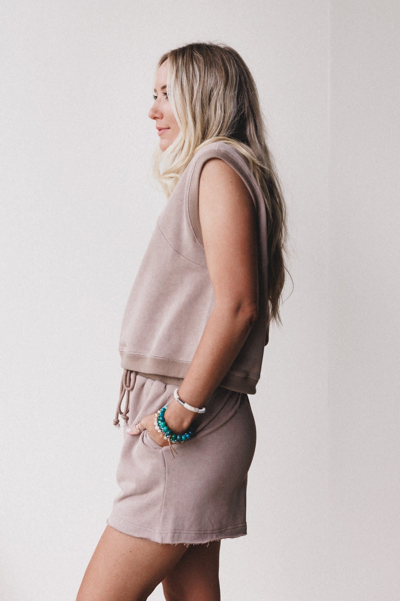 - Bottom: Waist: 30“, Stretched Waist: 31“, Rise: 15“, Inseam: 4.5”