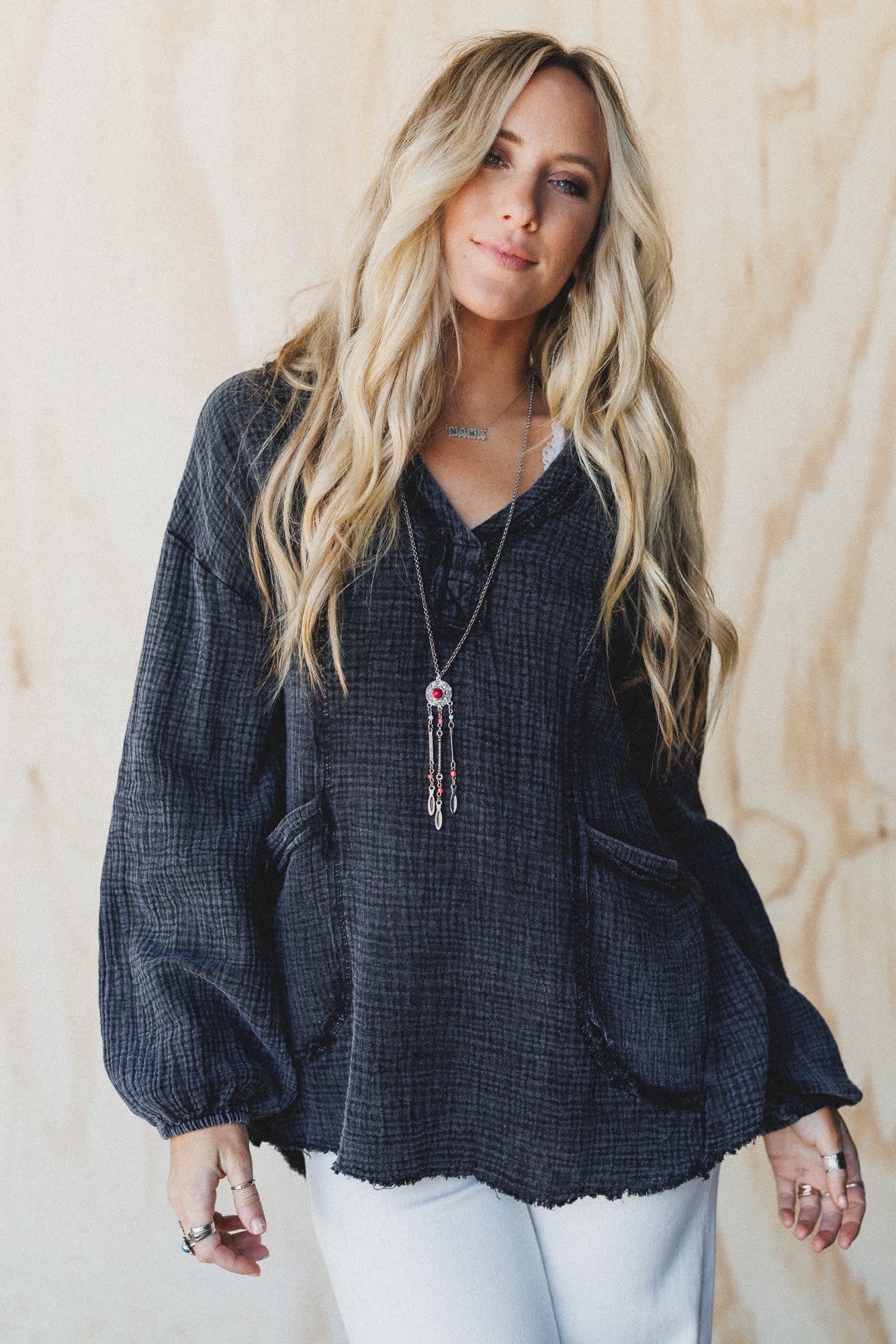 This cozy oversize boho top is great with joggers or dressed up with jeans.