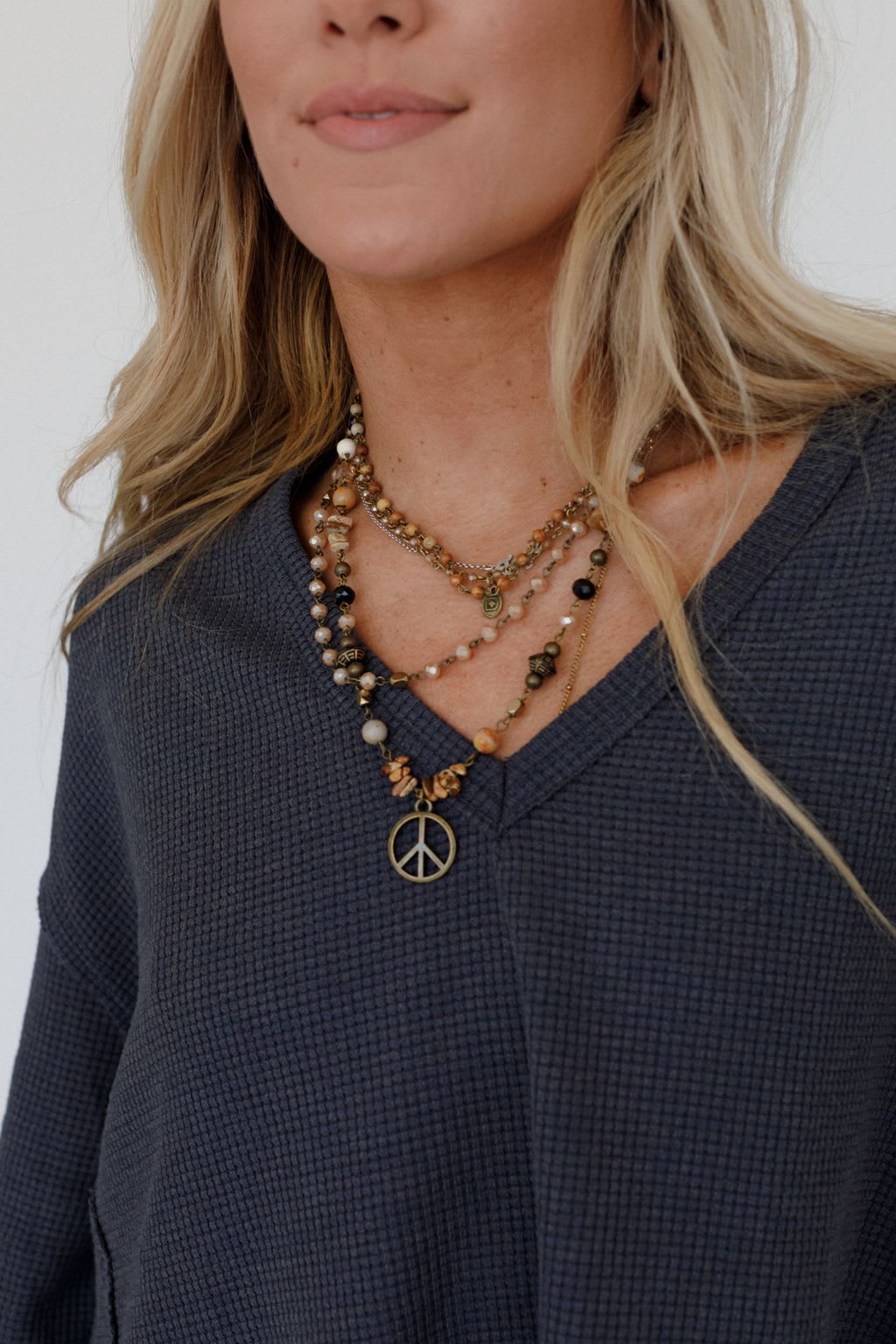 Add a cool and classic bohemian touch with the Kala Peace Necklace, this necklace will add something eye-catching to all your fave boho looks!