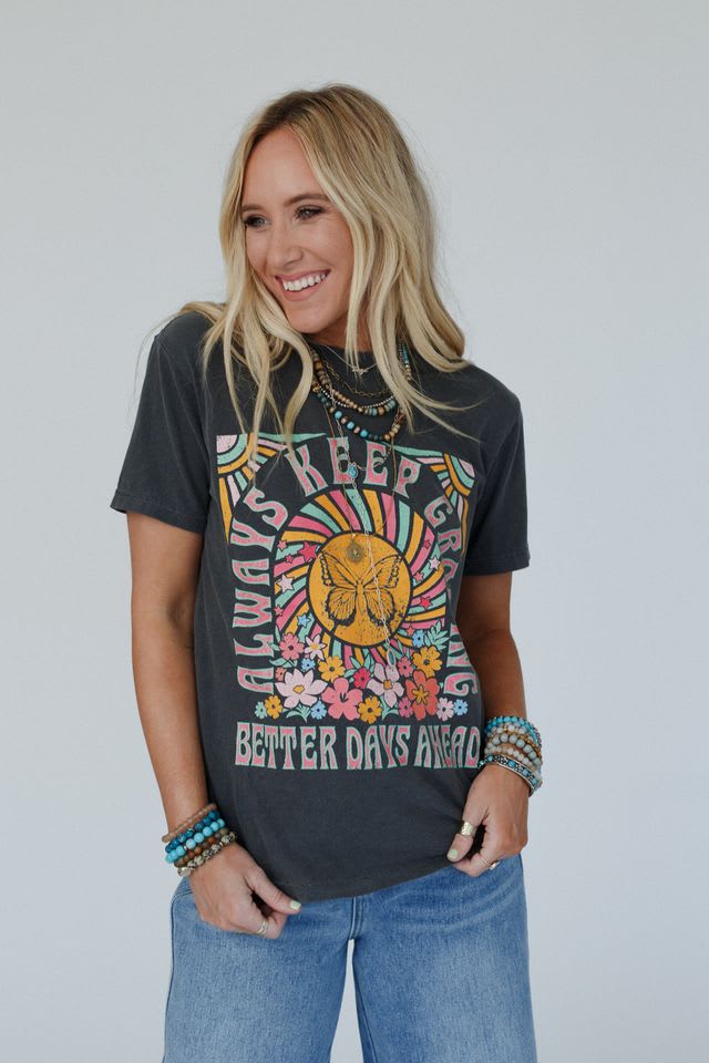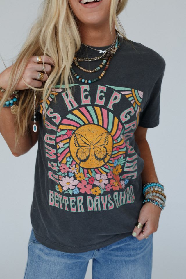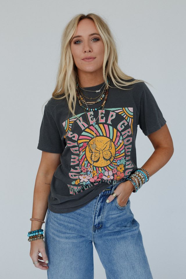 We all need our go-to graphic tee and the Keep Growing Graphic Tee is the perfect, positive addition to your boho collection!