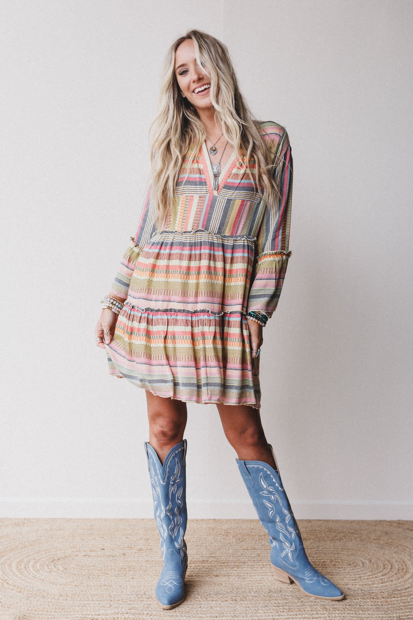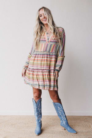 This retro dress is perfect for a night out on the town. Just add layered necklaces and booties.