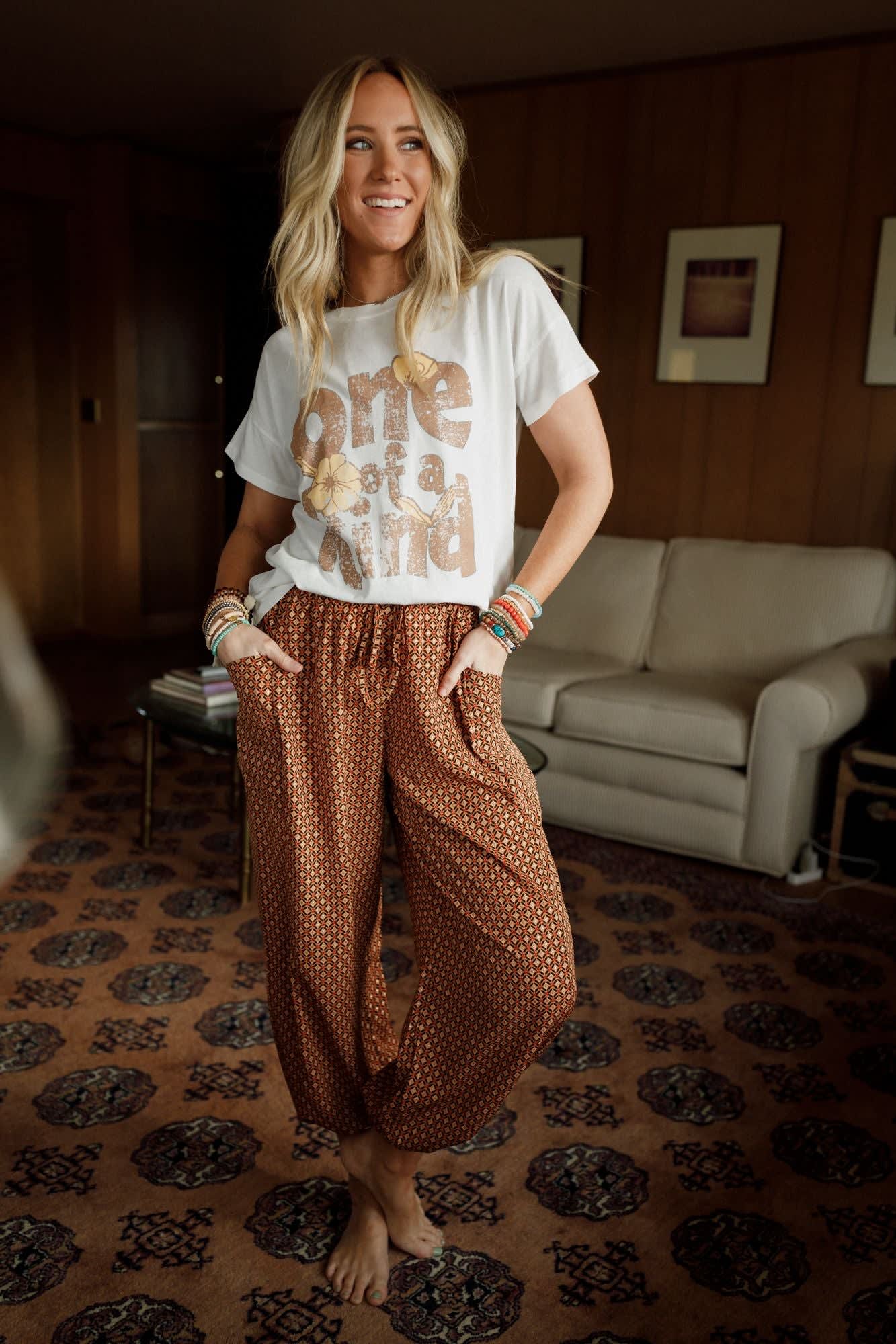 It will quickly become your go-to to graphic with all of your boho bottoms because it features: