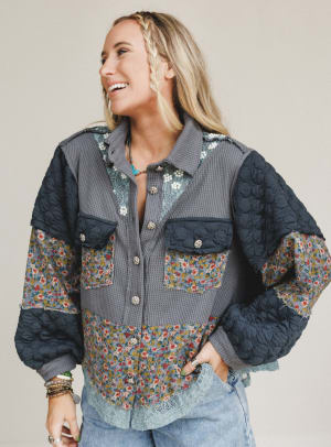 The Kiss the Wind Jacket is what happens when cozy and couture take a countryside stroll. This dreamy statement layer is built for breezy days, brisk nights, and bold hearts. A mashup of prints, textures, and handcrafted charm, it’s the kind of piece you’ll reach for when your outfit needs that extra touch of wildflower magic.