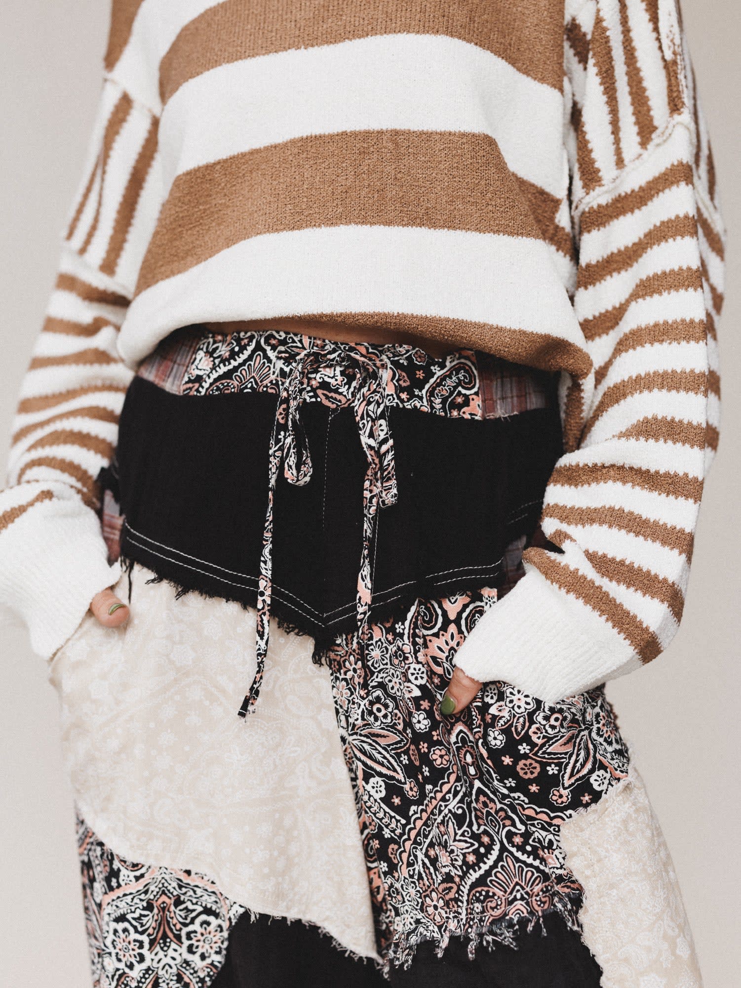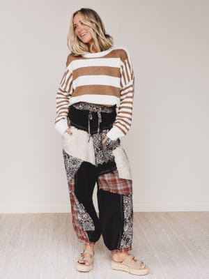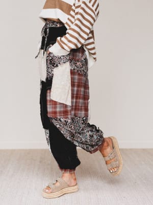 These pants are giving major patchwork daydream energy. With mixed prints, raw edges, and a relaxed vibe, they’re built for the wanderer who never settles for ordinary.