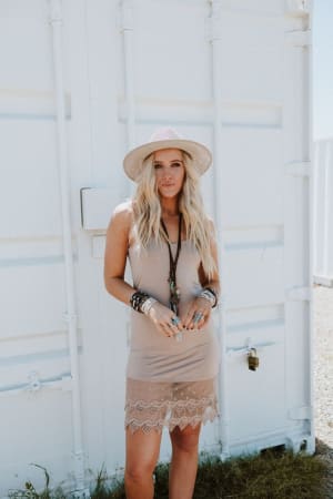 You will love the soft, seamless fabric of this body-grazing slip with its stunning pane of sheer-illusion lace that starts at the thigh to end above the knee. The peek-through lace border is adorned with pretty dots and artfully-stitched vineyard grapes that scallop the hemline. This piece has adjustable skinny straps and a scoop neckline in front and back.