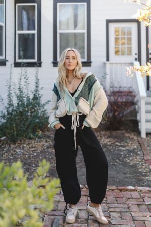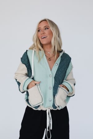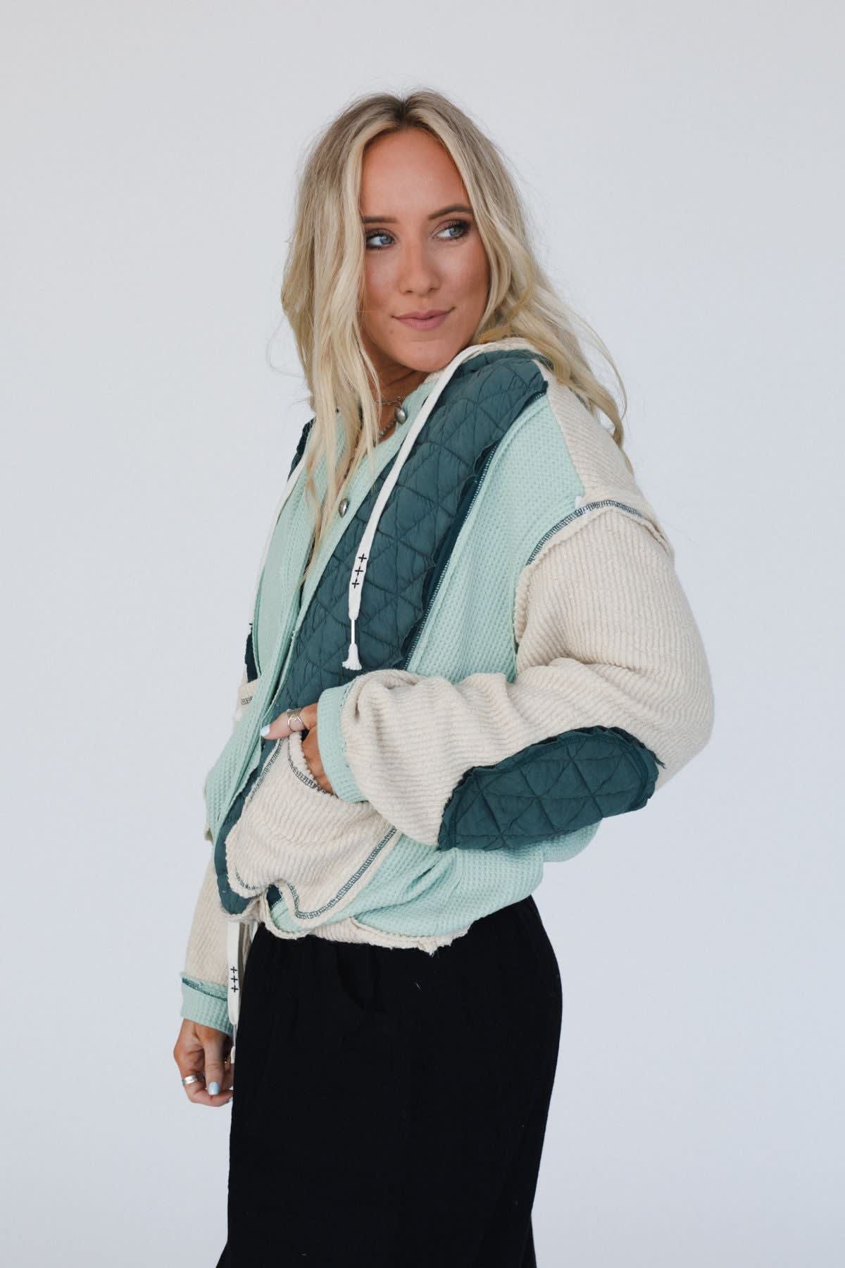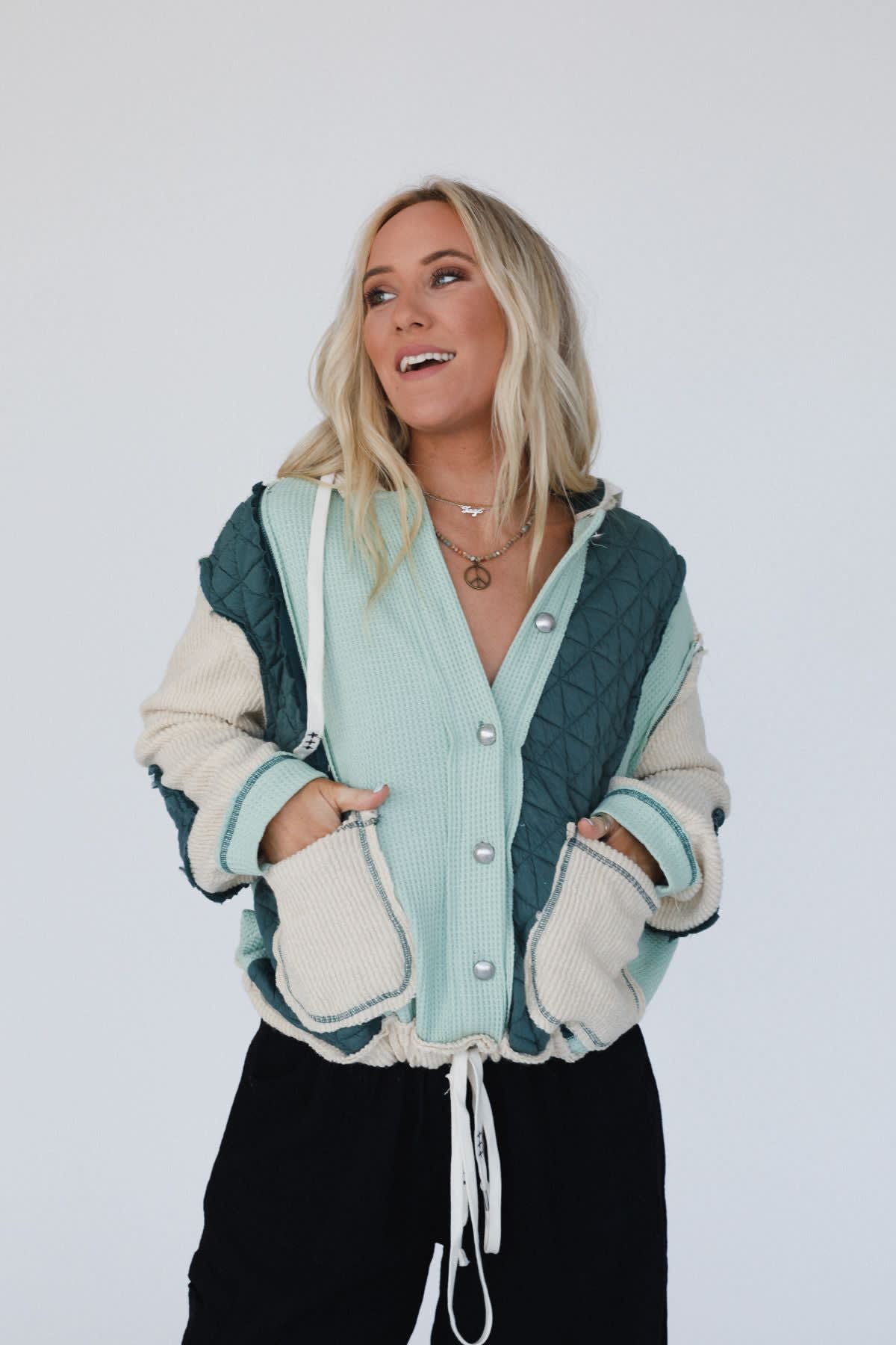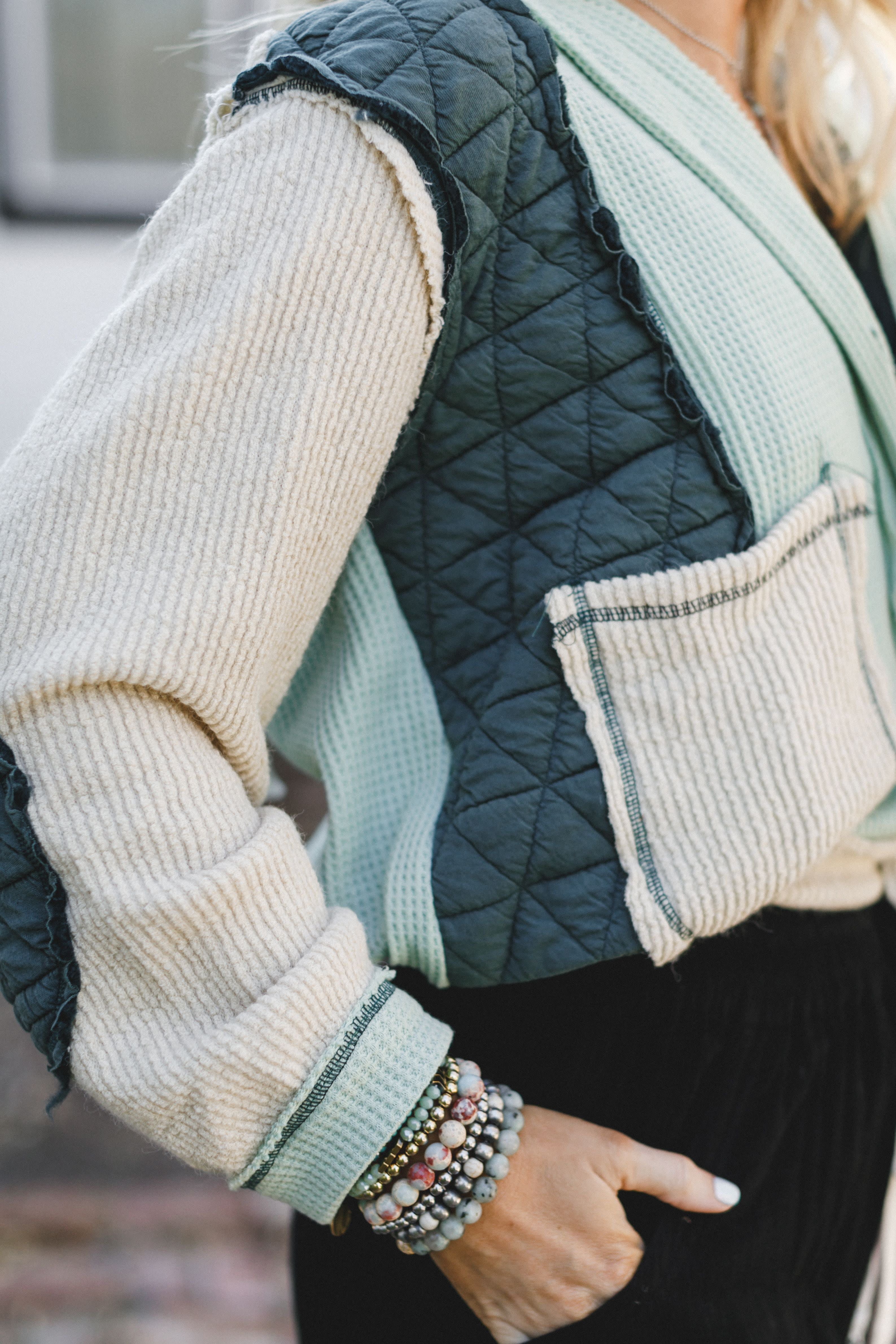 - Perfect mix of solid waffle knit and multi fabric throughout