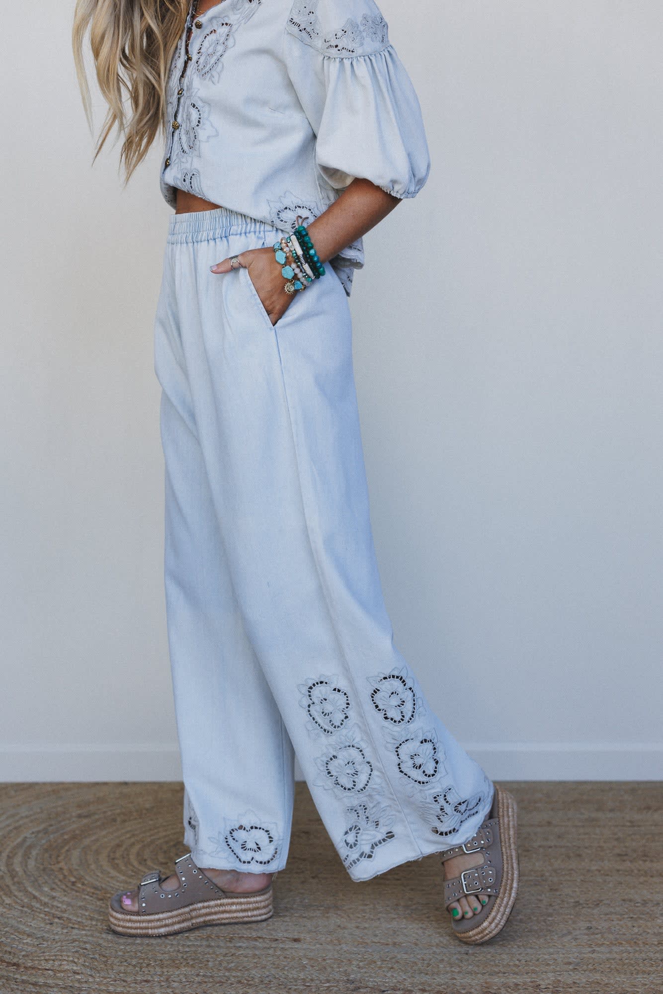 Leticia Embroidered Wide Leg Pants Color