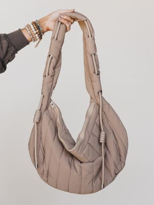 • Light taupe quilted finish with a soft, puffer-style texture for an on-trend neutral look