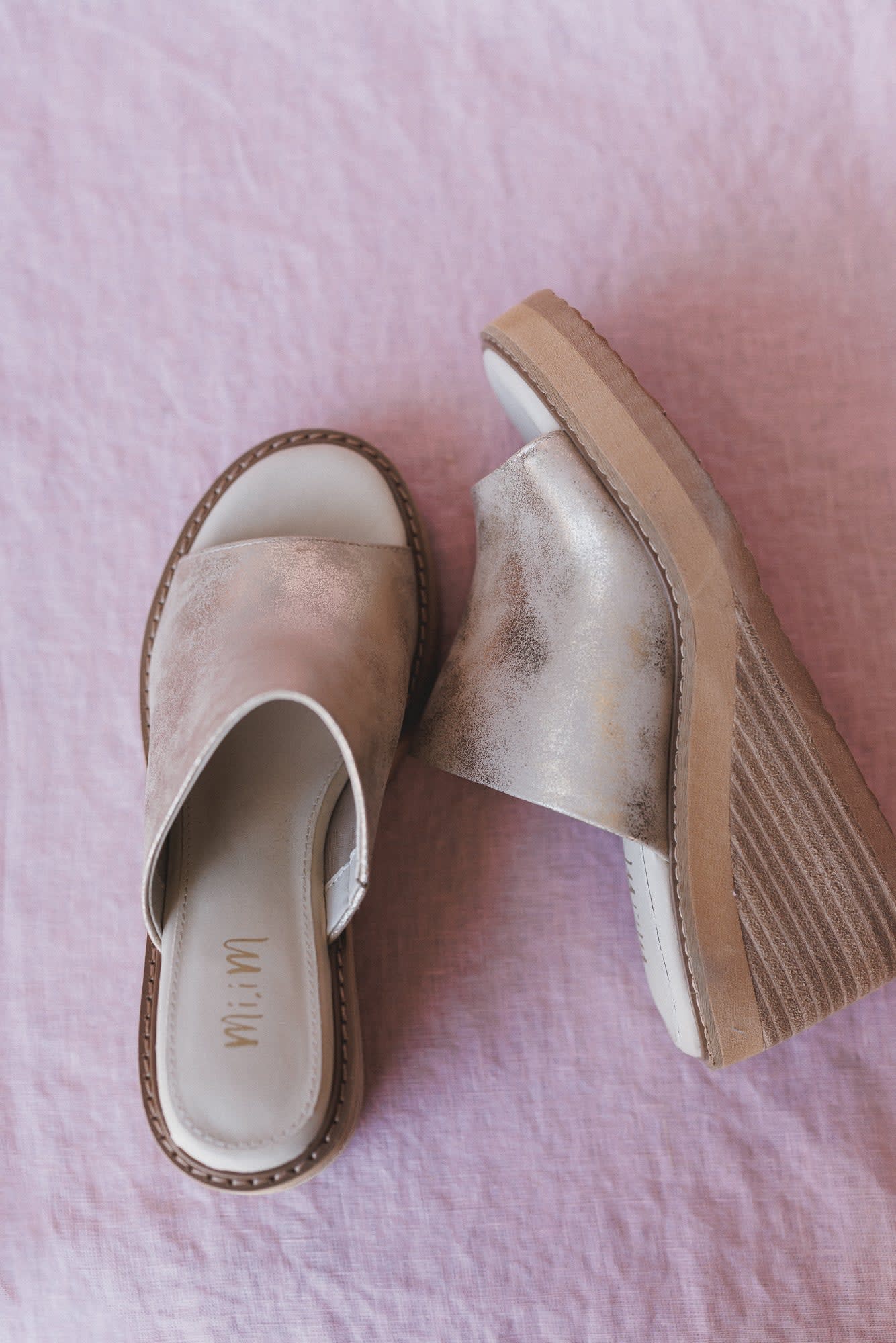 Pair these golden wedges with a flowy maxi skirt to show them off with every twirl.