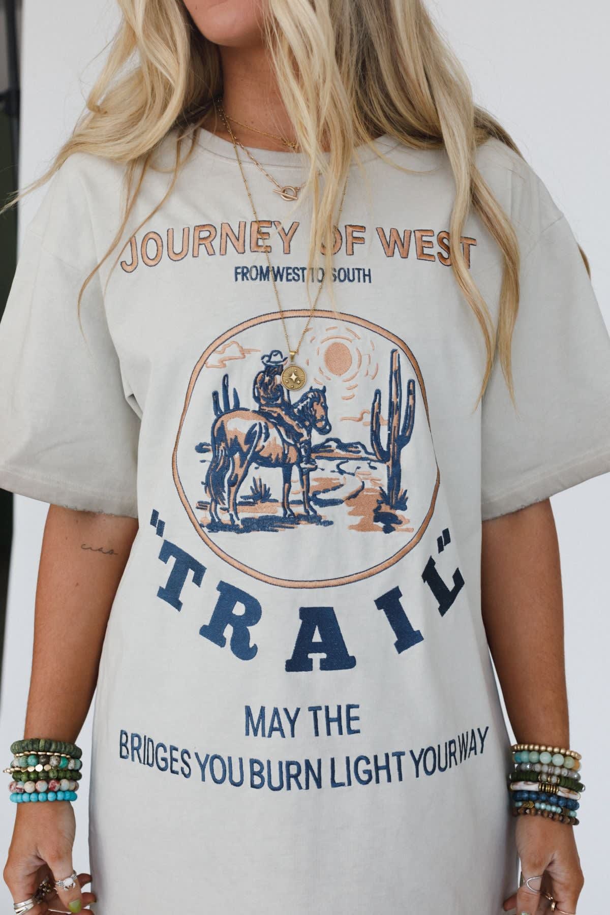- Western-inspired text including "Journey of the West", "Trail" and "May the bridges you burn light the way"
