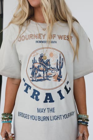 Shine bright in the Light The Way Graphic Tee. Featuring a western-inspired design, this tee effortlessly combines comfort and style, making it a must-have for your boho wardrobe!