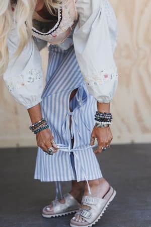 - Tie closures on sides