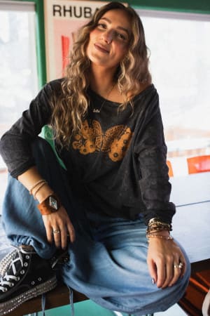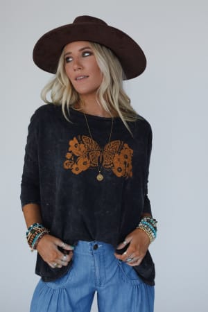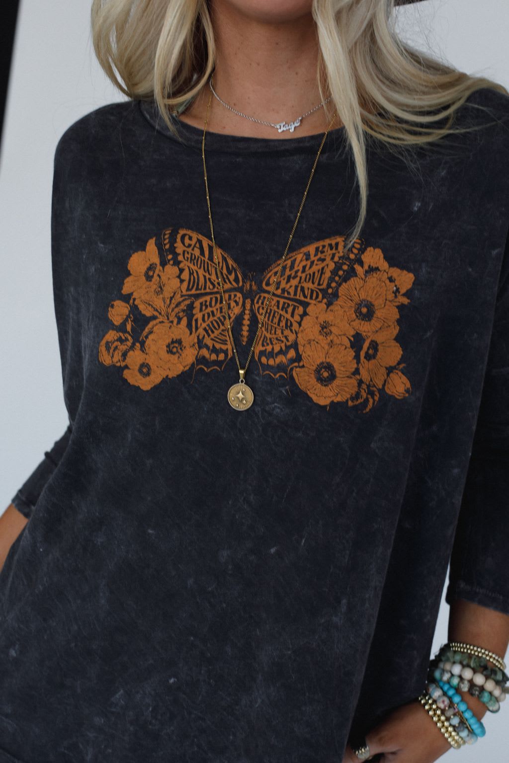 Everyone needs their go-to graphic tee and the Like A Butterfly Graphic Top is the perfect essential to your boho closet!