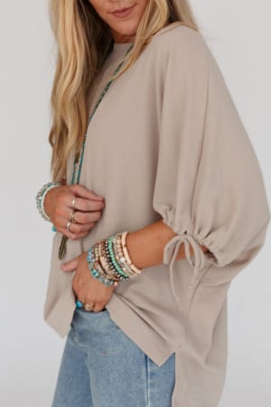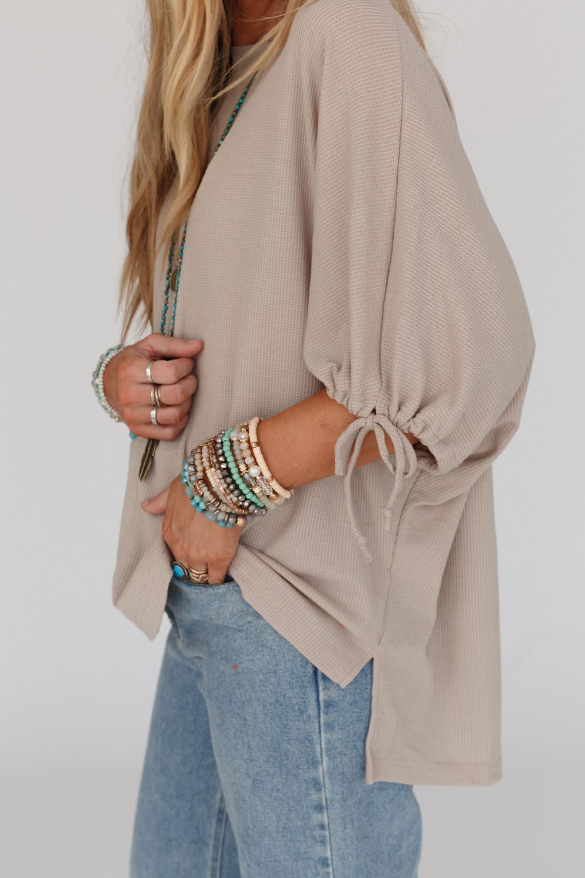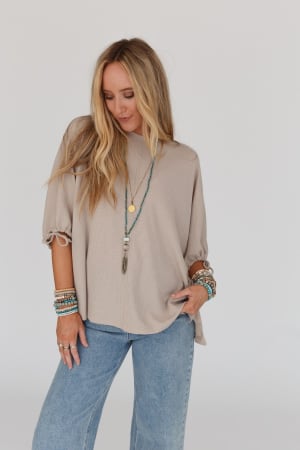 - Slight high-low bottom edge with mini slits for added comfort and style