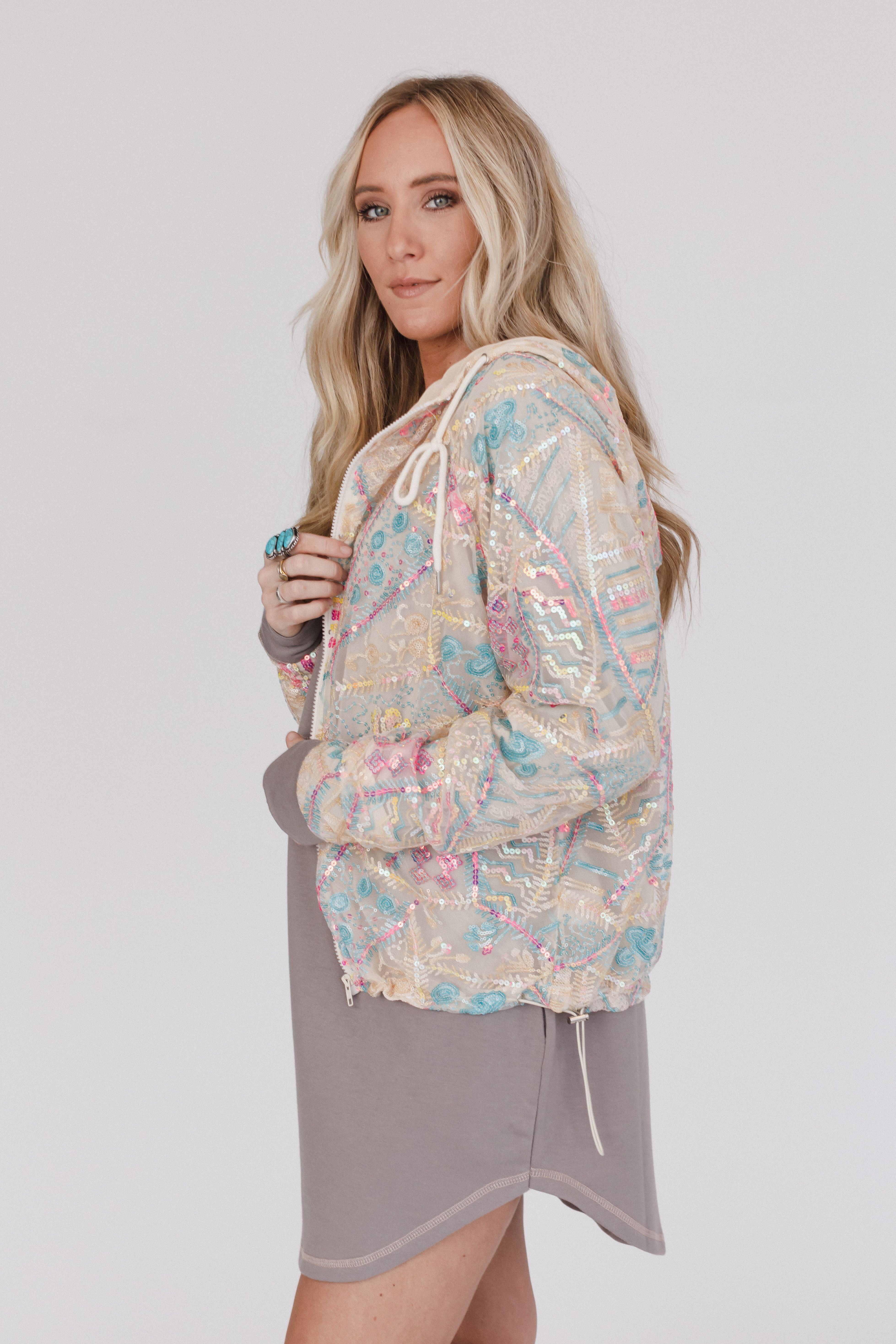 Living It Up Sequin Hoodie Jacket