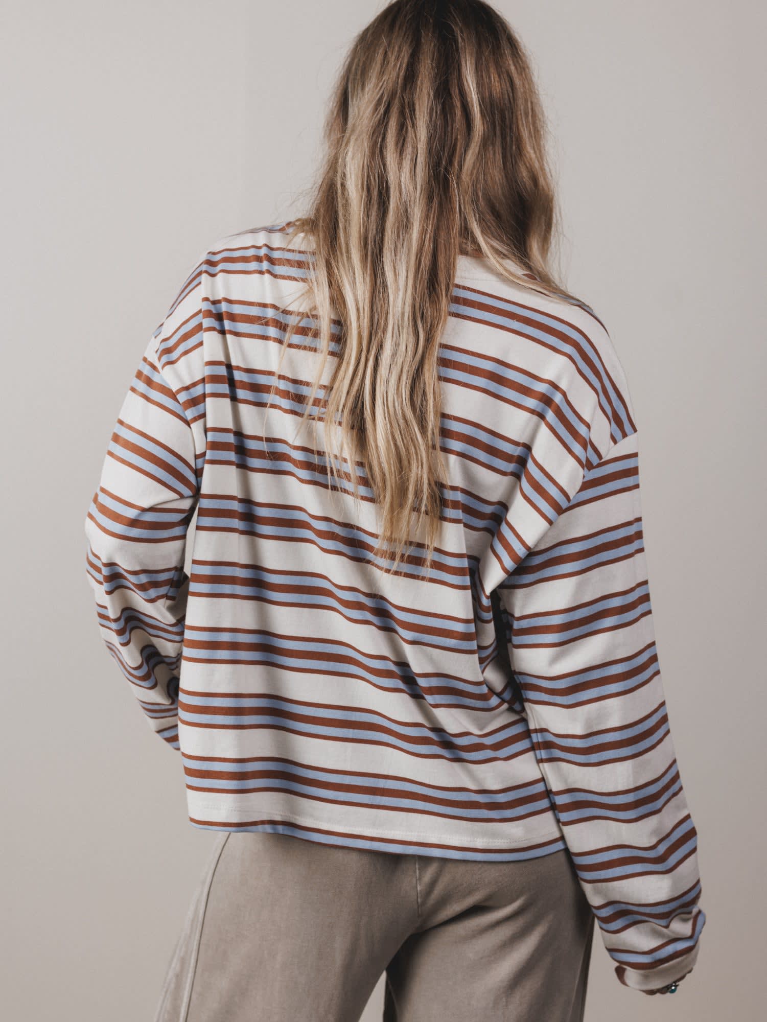 Simple, soft, and endlessly wearable — The Long Sleeve Striped Top is a go-to for those crisp mornings and slow, comfy days. It’s got a hint of vintage with just enough slouch to keep it effortlessly cool.
