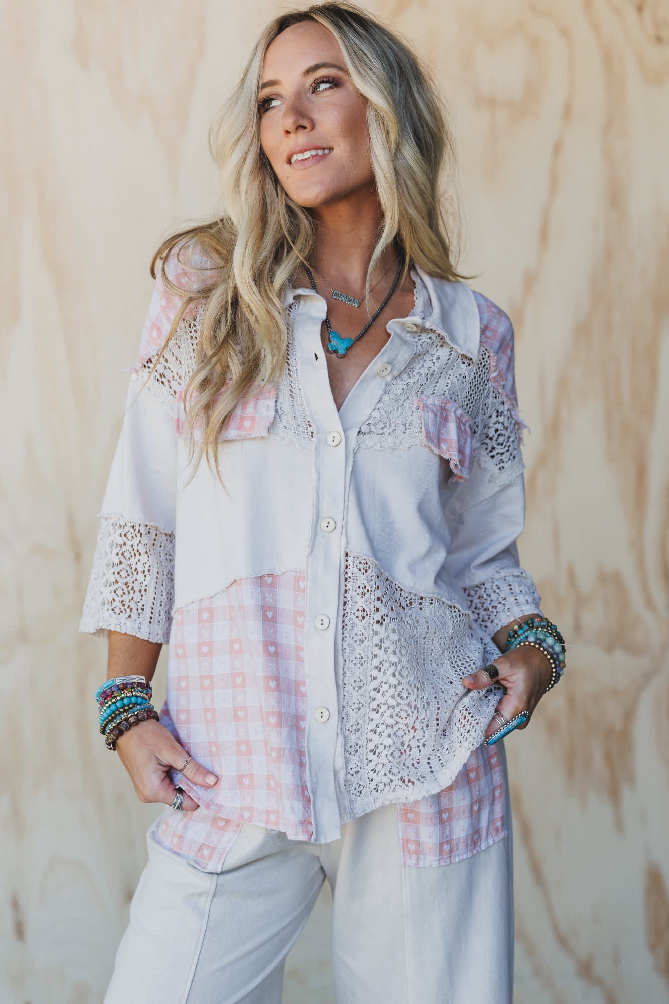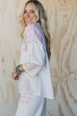 Wear this oversize boho top with wide leg jeans for a laid back look.Β