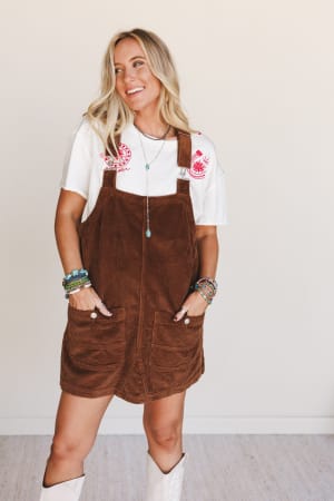 The Lou Lou Overalls Dress is giving major vintage desert vibes — playful, earthy, and ready for adventure.
