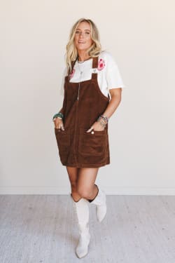 The Lou Lou Overalls Dress is giving major vintage desert vibes — playful, earthy, and ready for adventure.