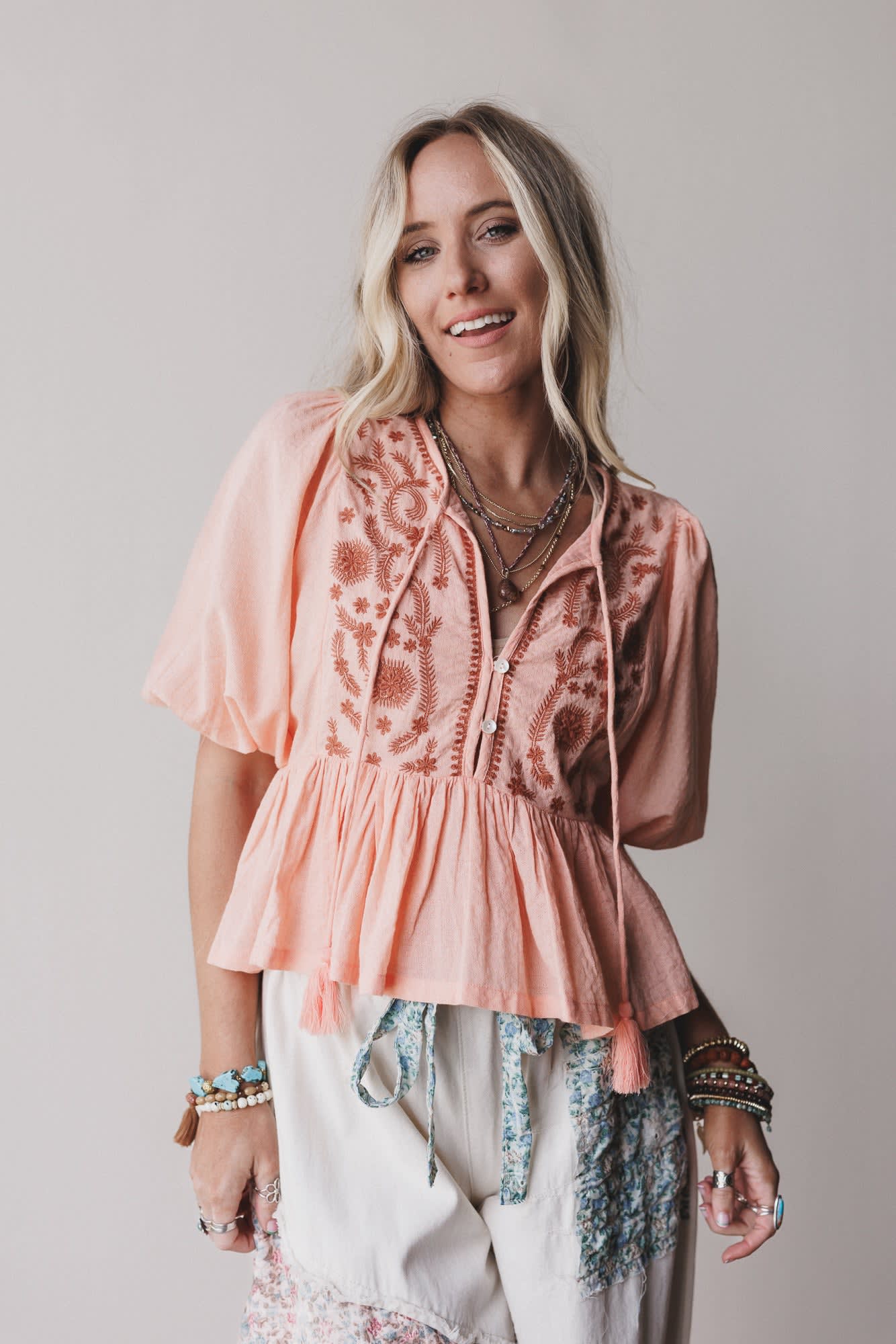 Louella Embroidered Peplum Top
