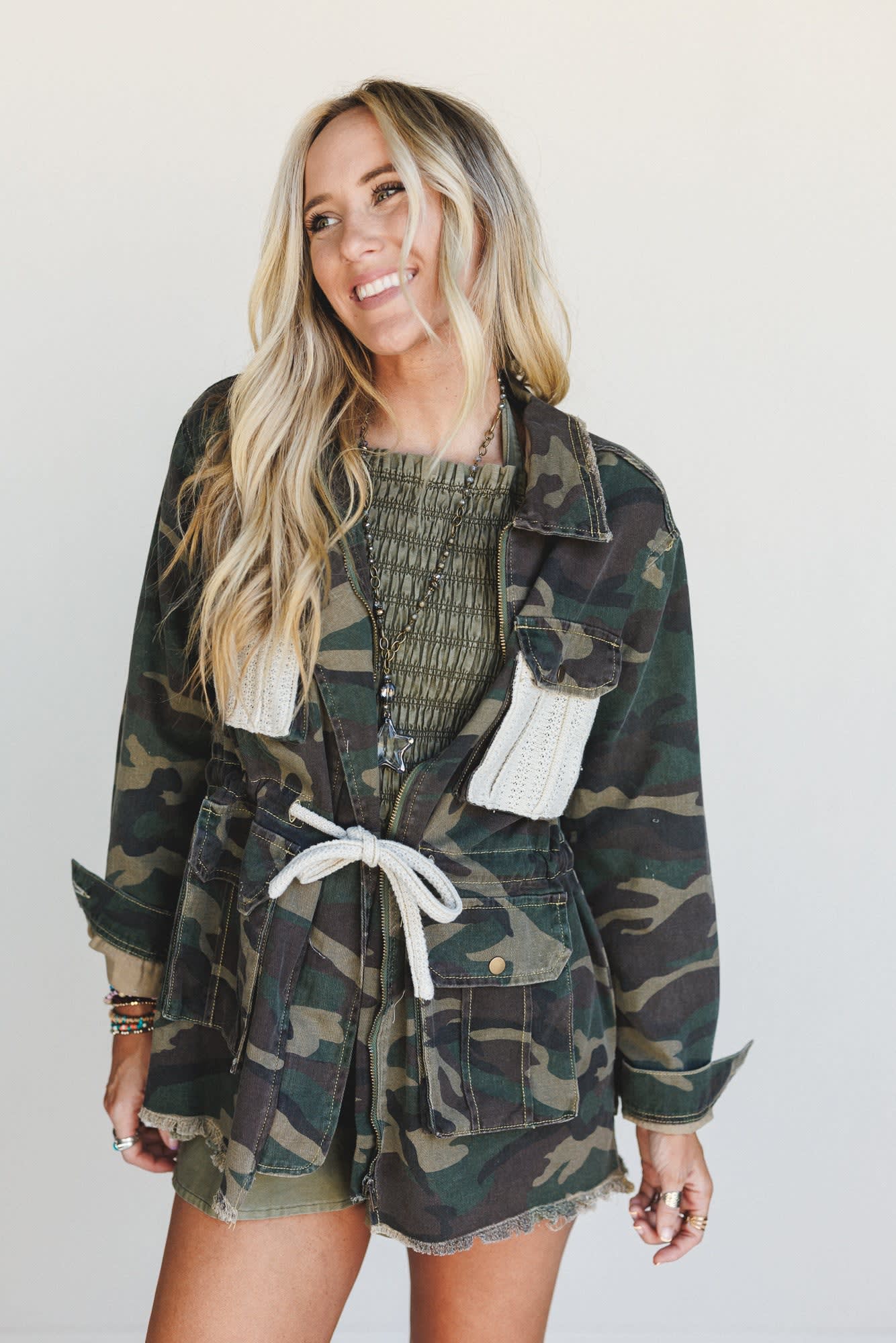 Bring some peace to your wild side—this camo jacket is a cool blend of edge and ease.