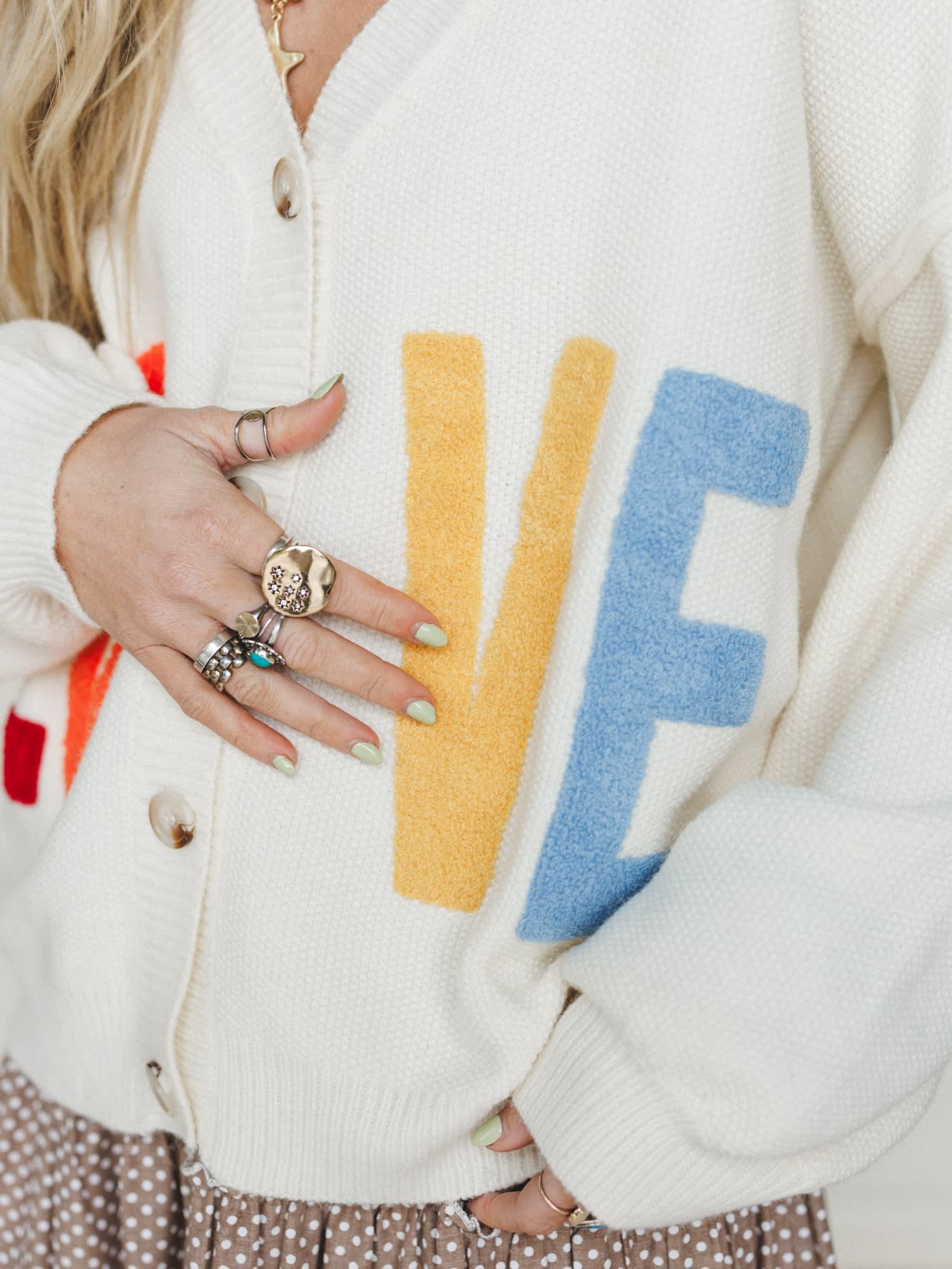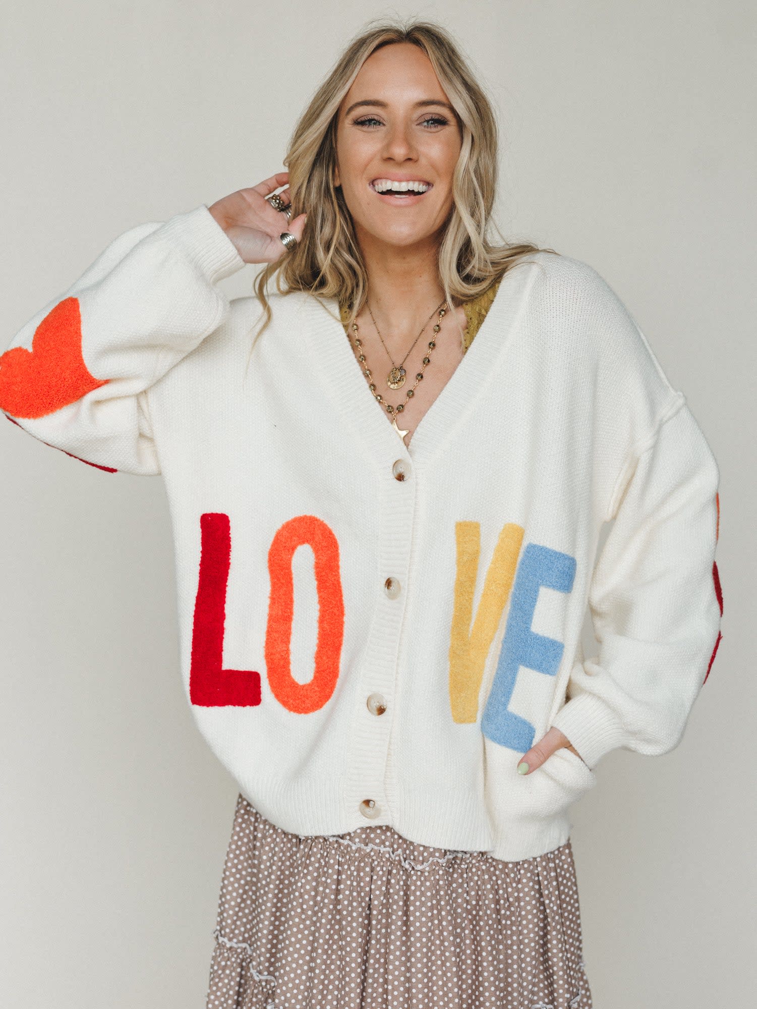 Made for cozy nights in, casual coffee dates, or adding a little love to your daily layers—this playful cardigan wraps you in warmth and good vibes.