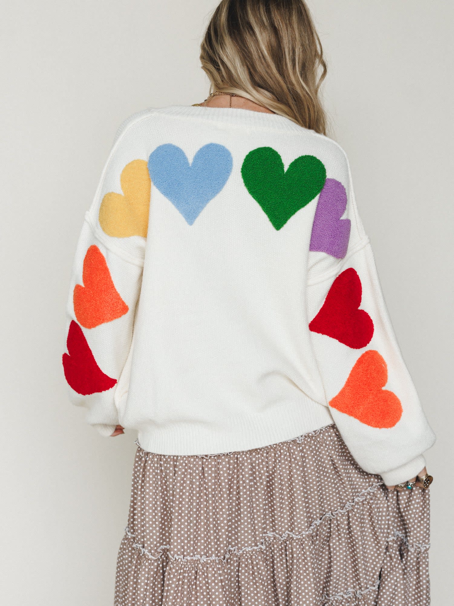 - Ultra-soft knit with colorful tufted heart and LOVE lettering