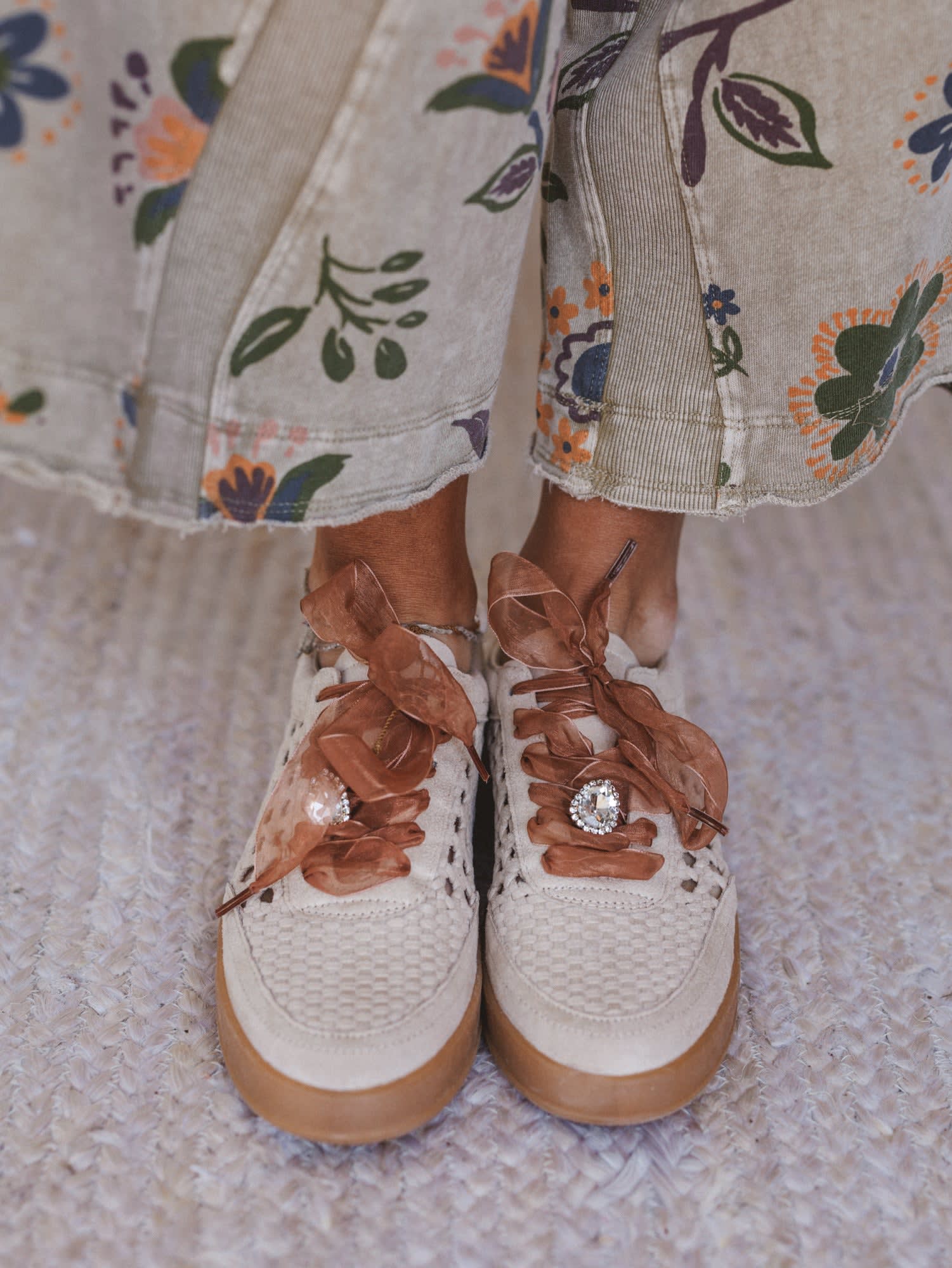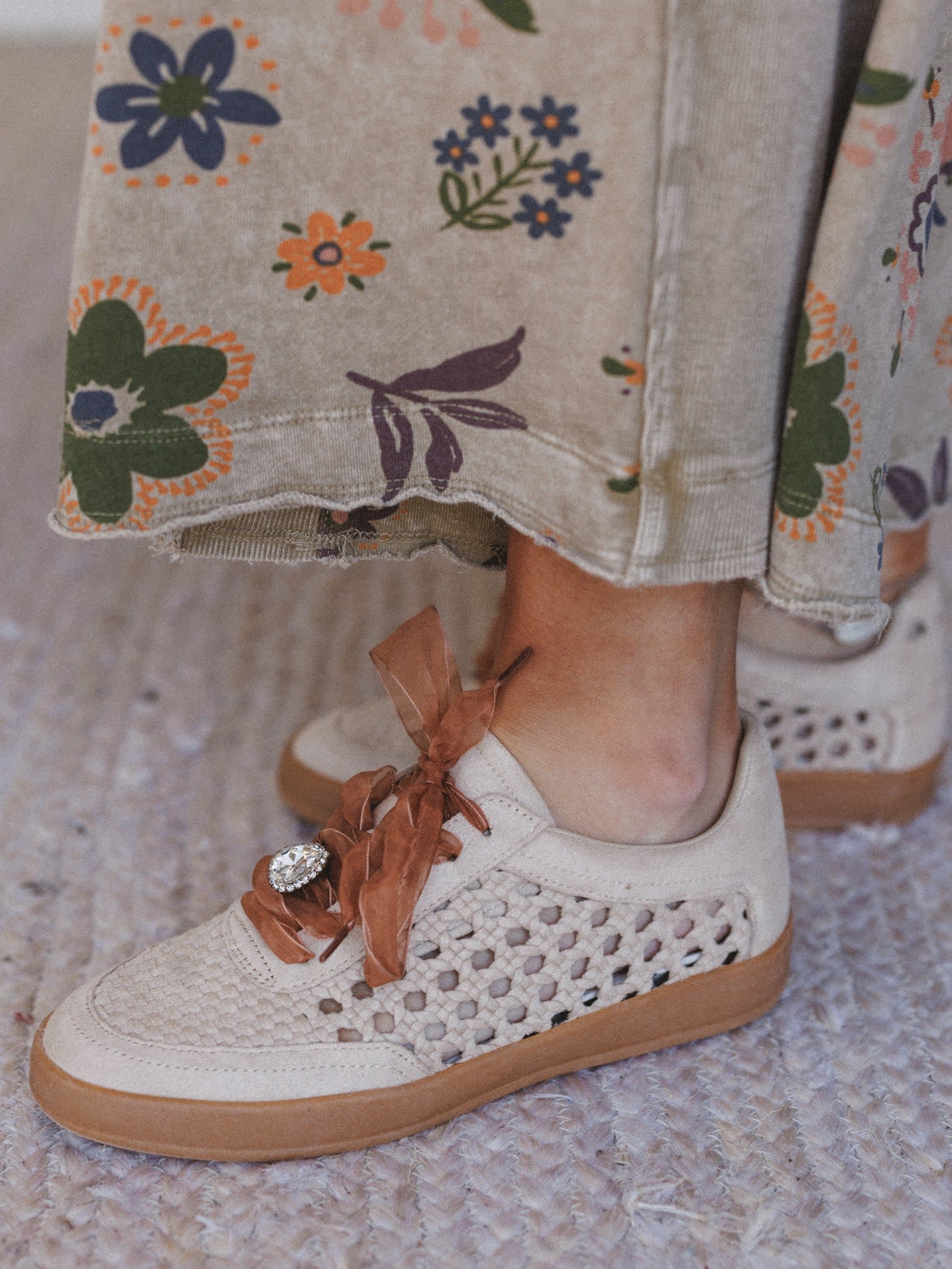 A little vintage charm, a little sparkle, and a whole lot of comfort. The Love Me Woven Sneakers bring feminine details to an everyday shoe with their woven texture, soft neutral tone, and delicate ribbon laces.