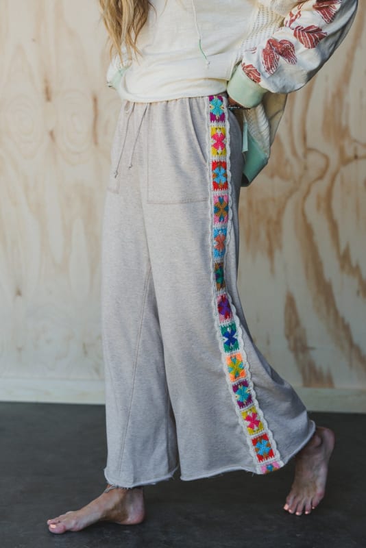 Excited to bring you the Love Seeker Crochet Panel Pants from our exclusive collection; The Nest by Three Bird Nest. Check out the rest of the collection here. These wide leg pants look amazing with sneakers and graphic tees.