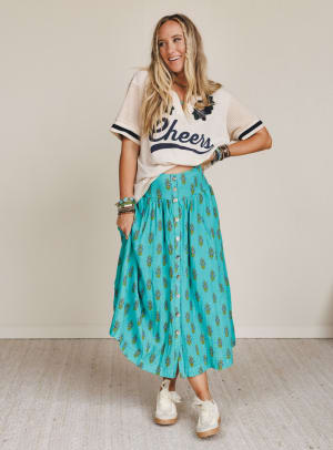 Whether you pair it with a knotted tee or a floaty blouse, this skirt is the definition of boho bliss. Trust us—it’s love at first twirl.