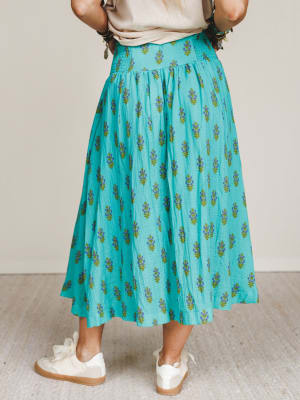 Channel carefree vibes and vintage charm with the Love Spell Floral Maxi Skirt. With its breezy silhouette and enchanting hand-block floral print, this skirt brings all the feel-good energy of a sun-drenched daydream. Designed for twirling, wandering, or simply looking effortlessly cool—this one’s a closet crush in the making.