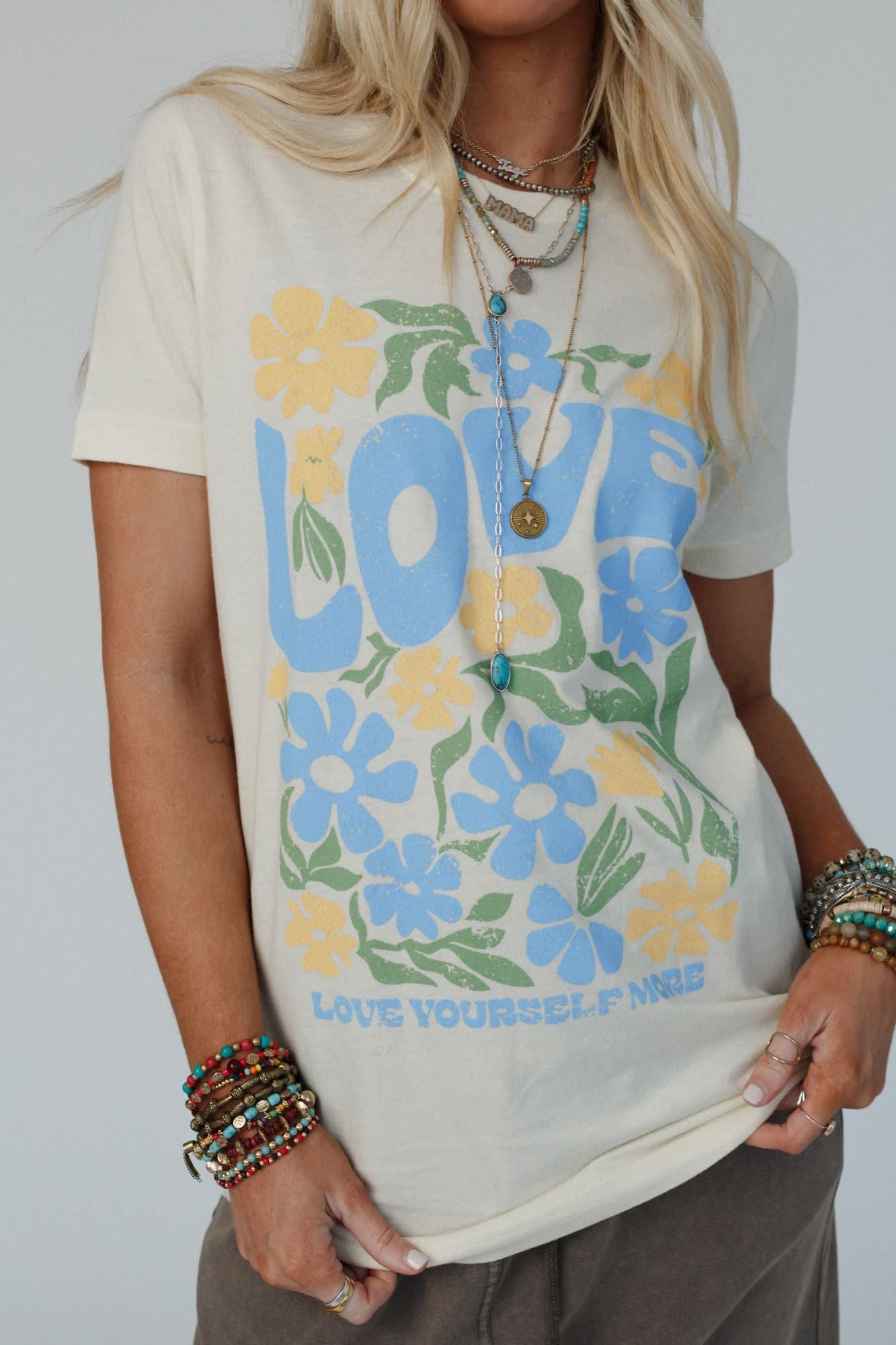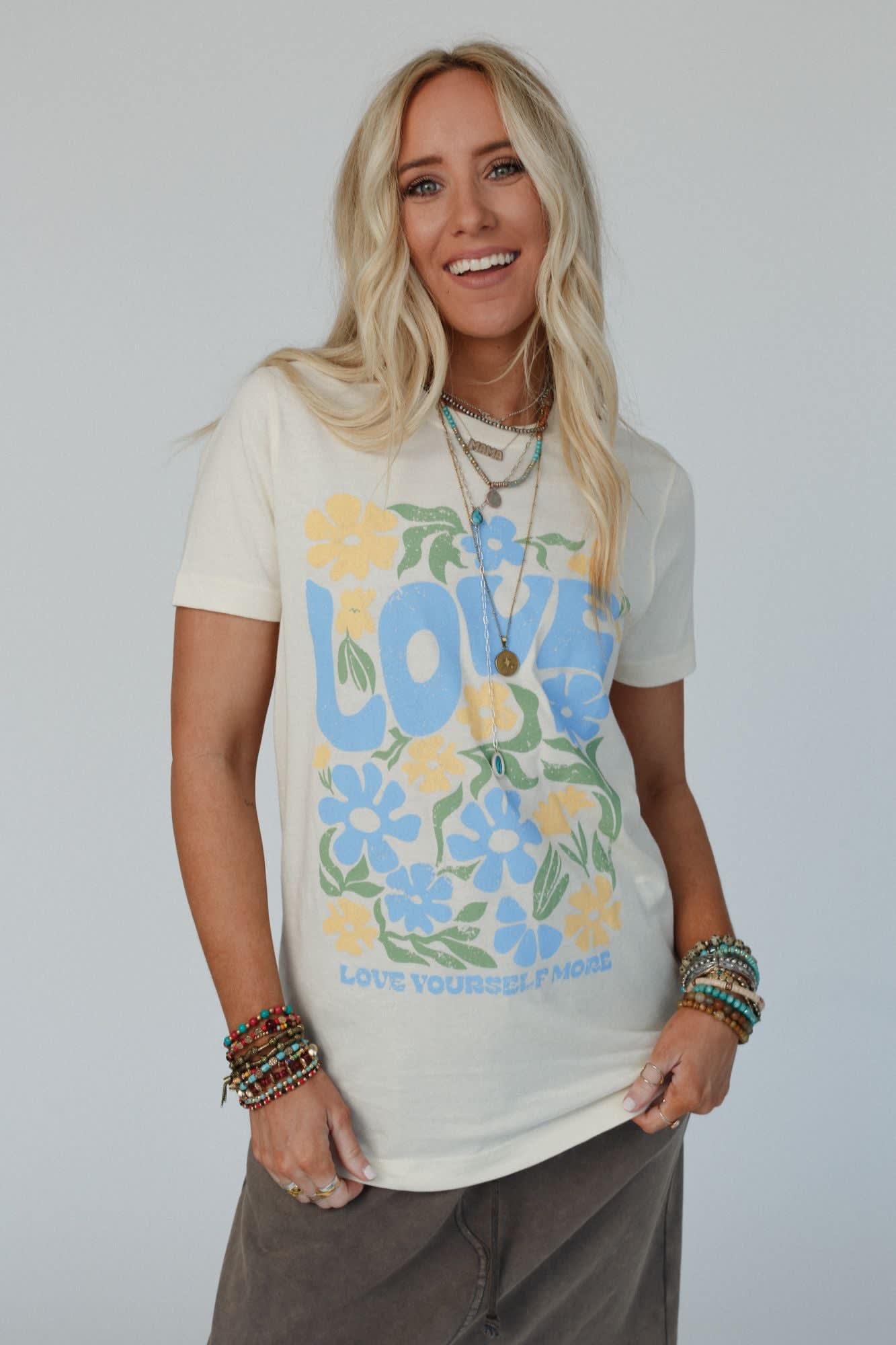 Everyone needs their go-to graphic tee and the Love Yourself Graphic Tee is the perfect boho addition to your closet!