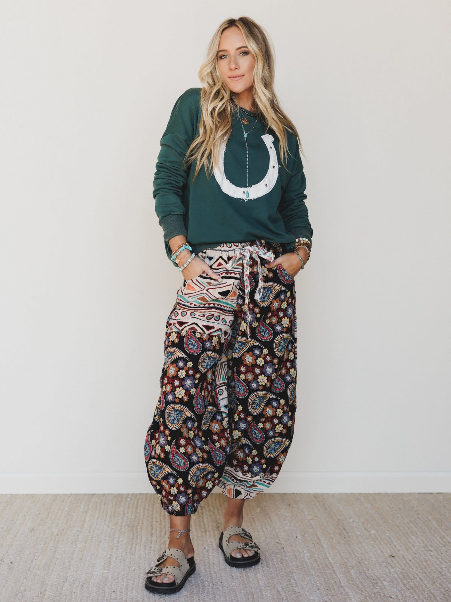 - Includes the Groovy Effect Pants with mixed paisley and geometric prints for that standout boho vibe