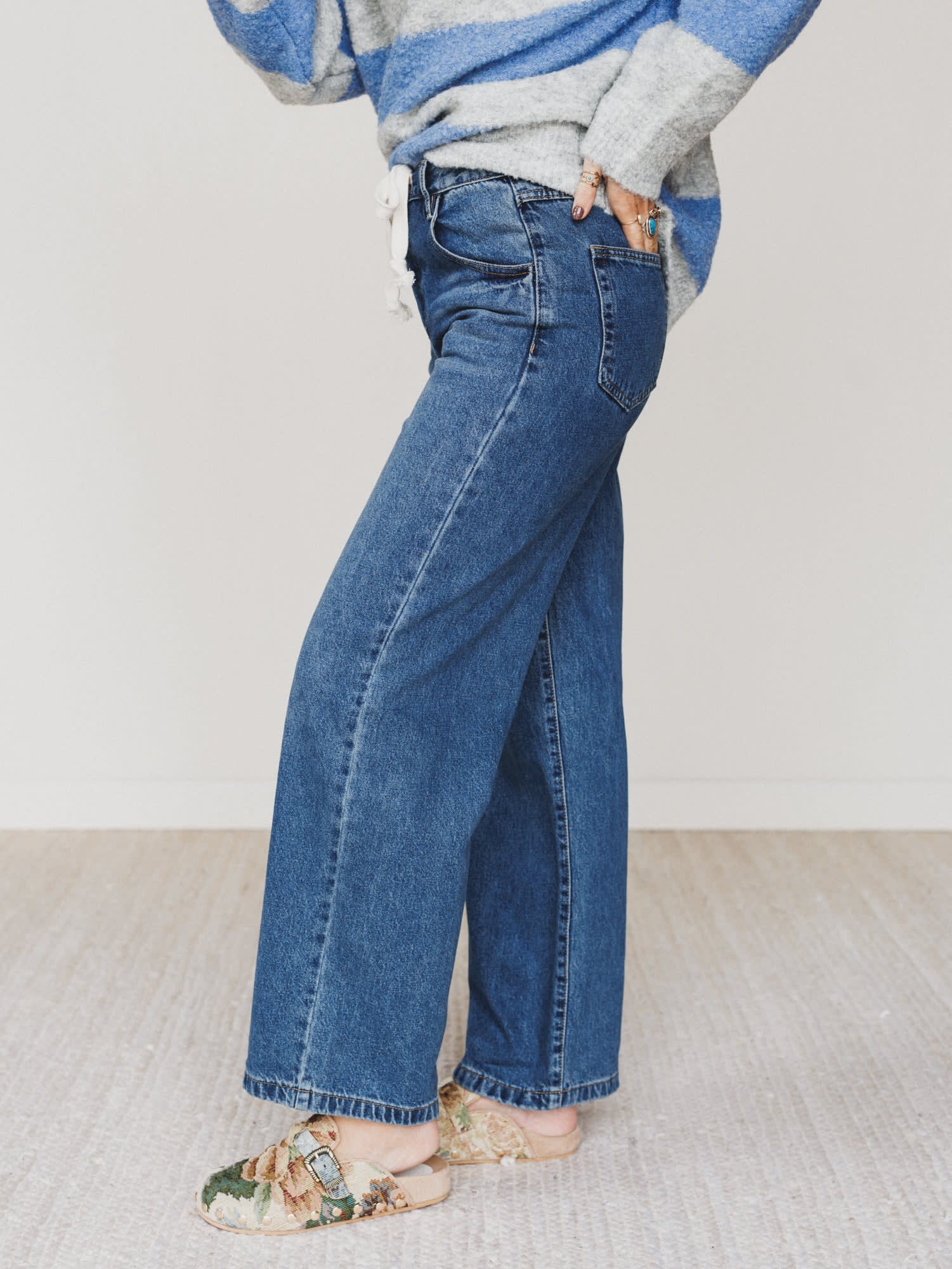 • Relaxed wide leg silhouette gives a vintage-inspired look