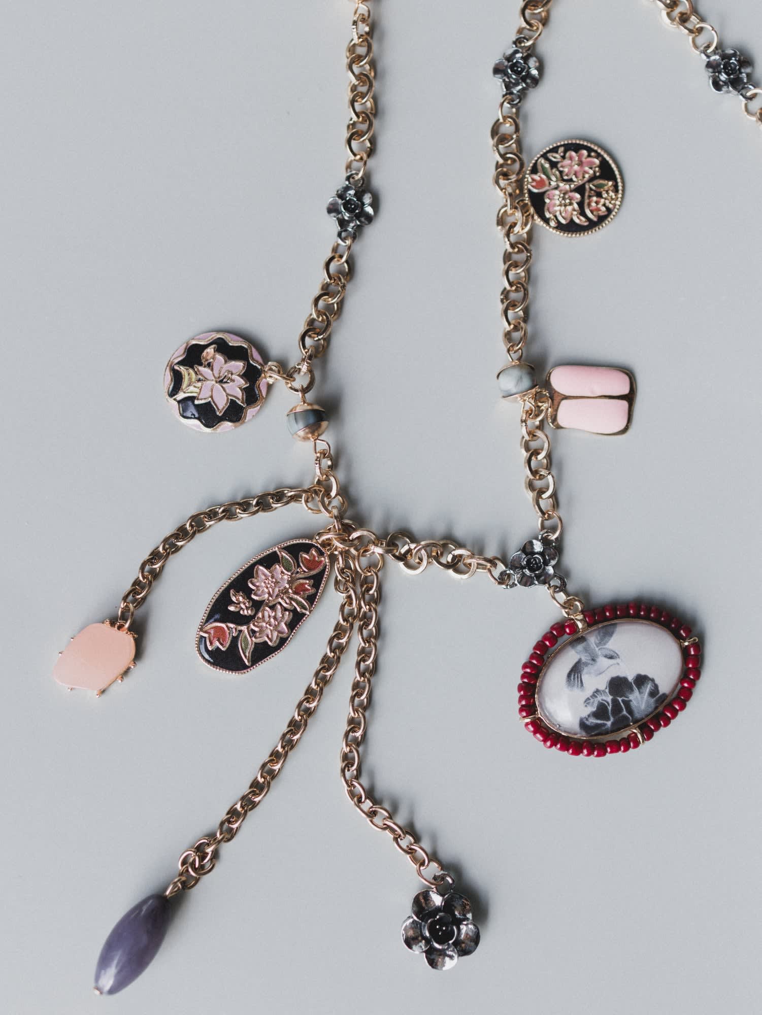 - Gold-tone chain with mixed charm detailing