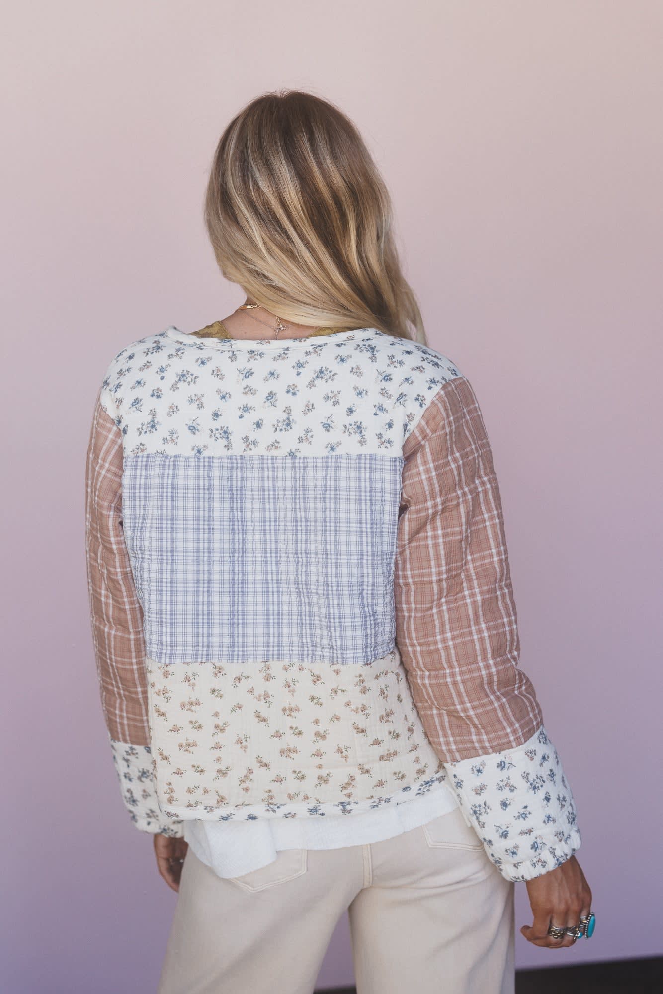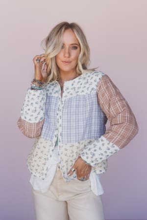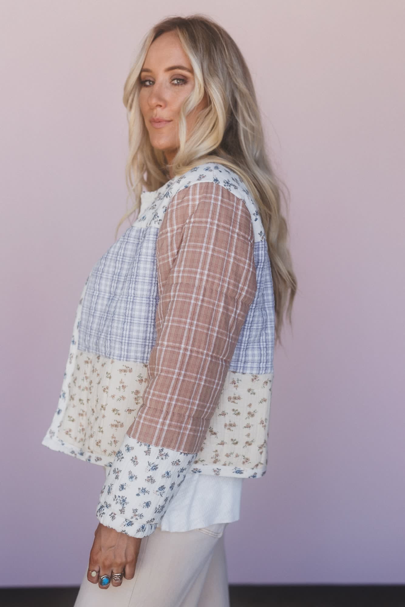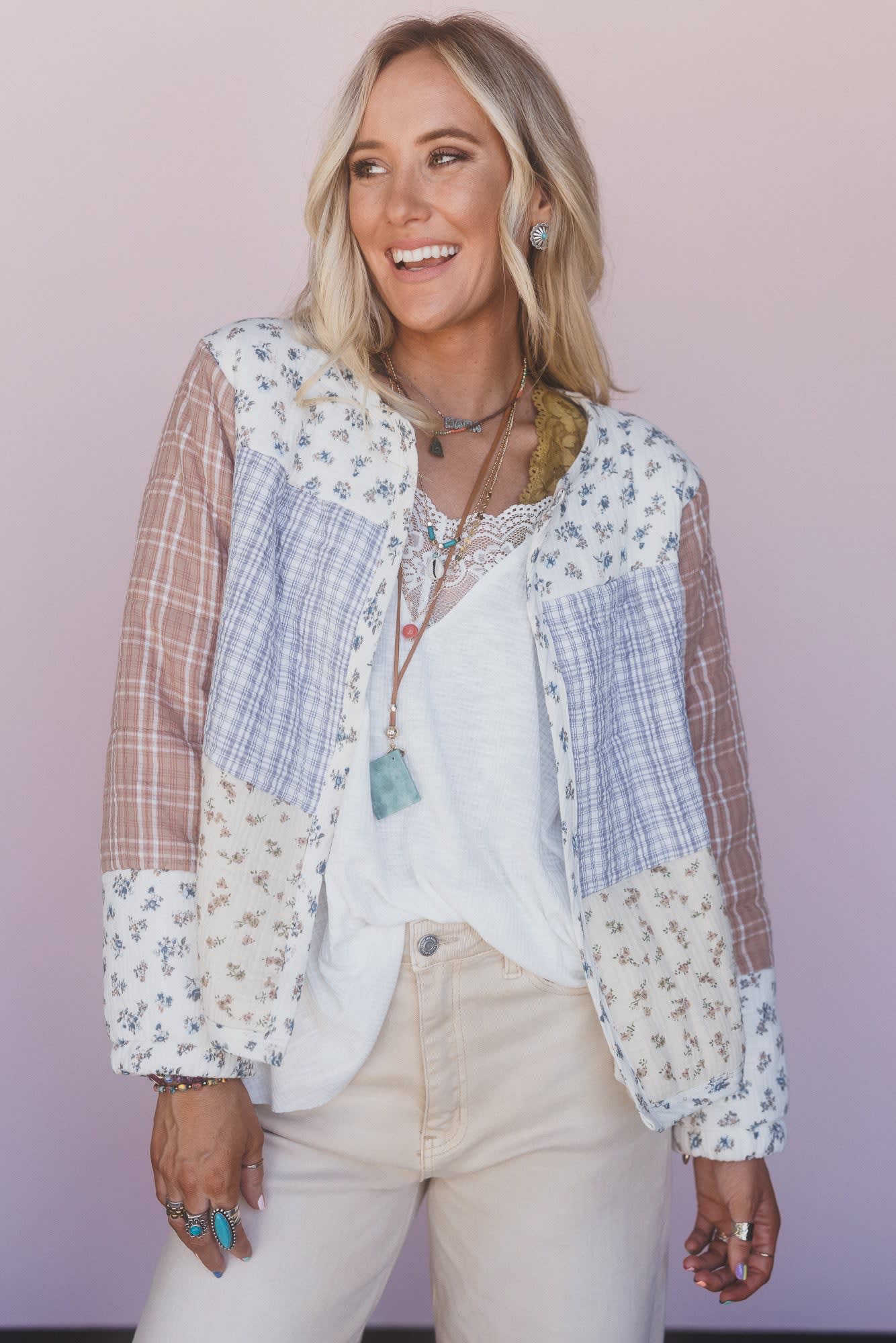 Pair this patchwork shacket with a crochet top and white jeans for a casual boho look.