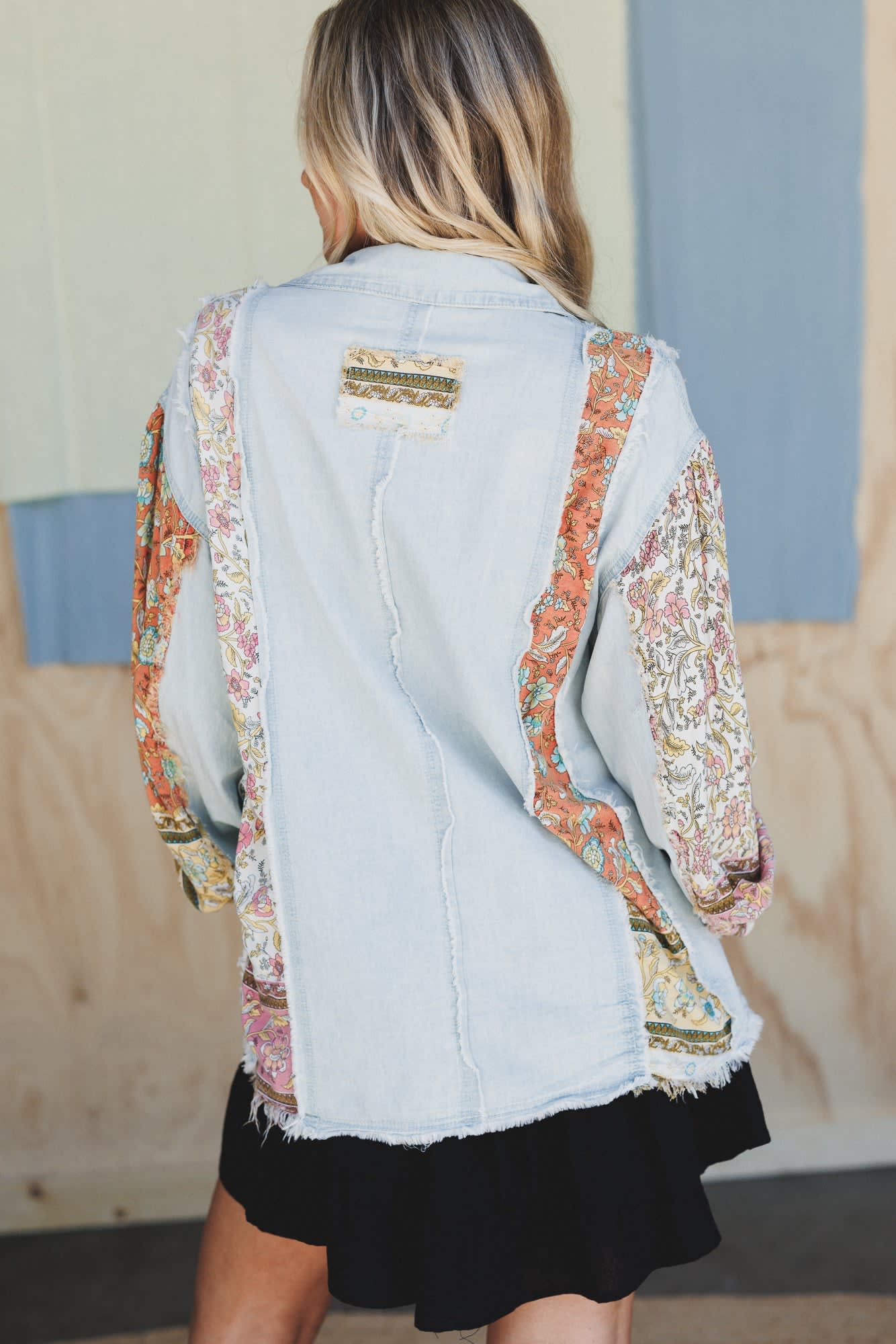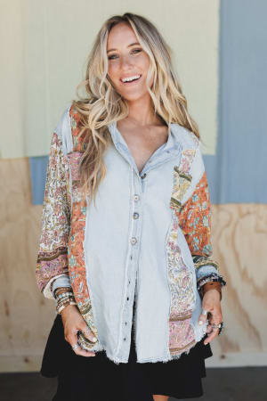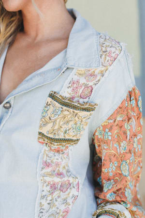 This patchwork button down looks amazing with matching jeans for a denim on denim look.