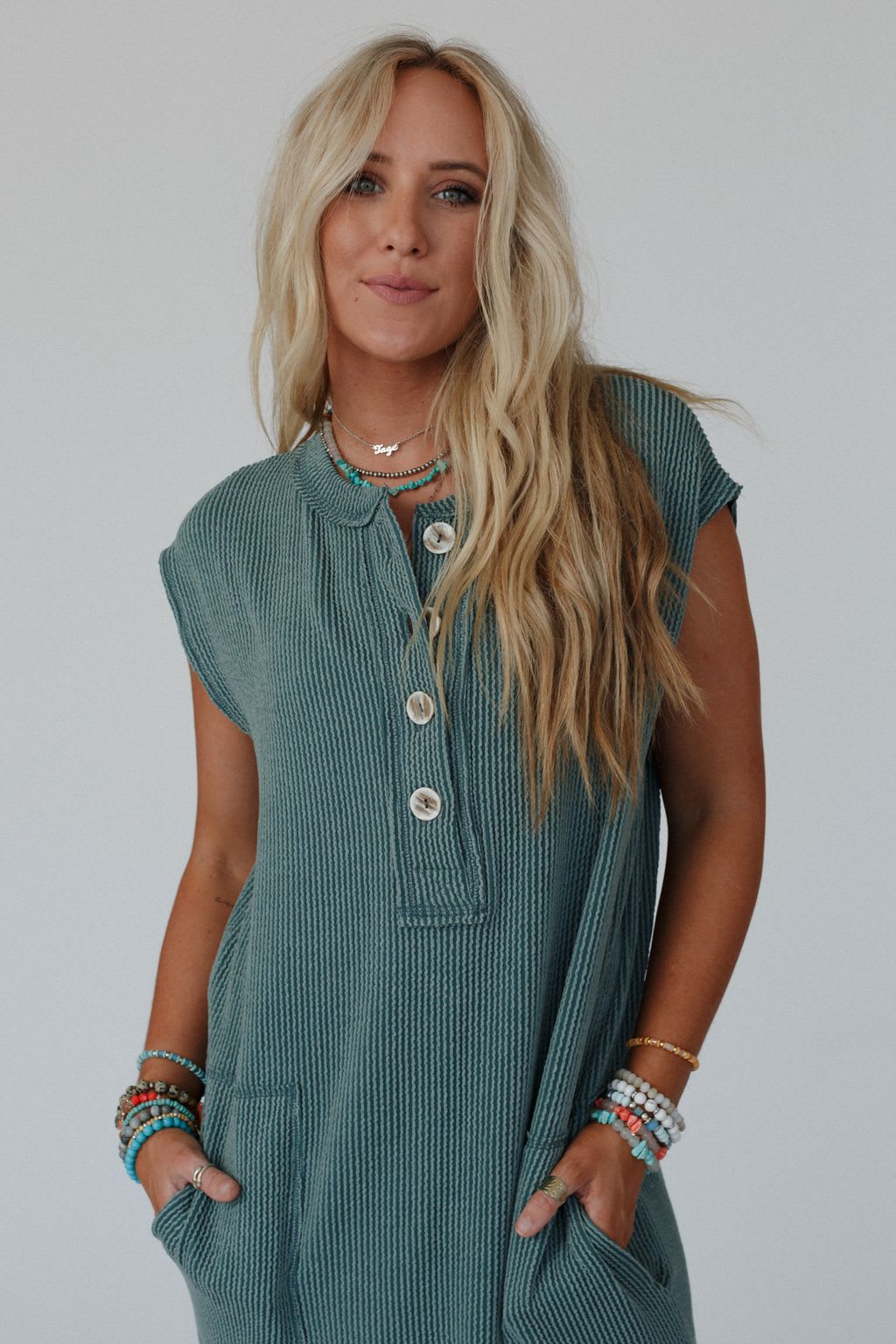 - Clean bottom hem with side slits for added comfort and boho style