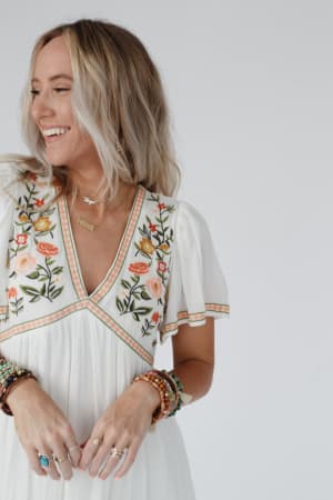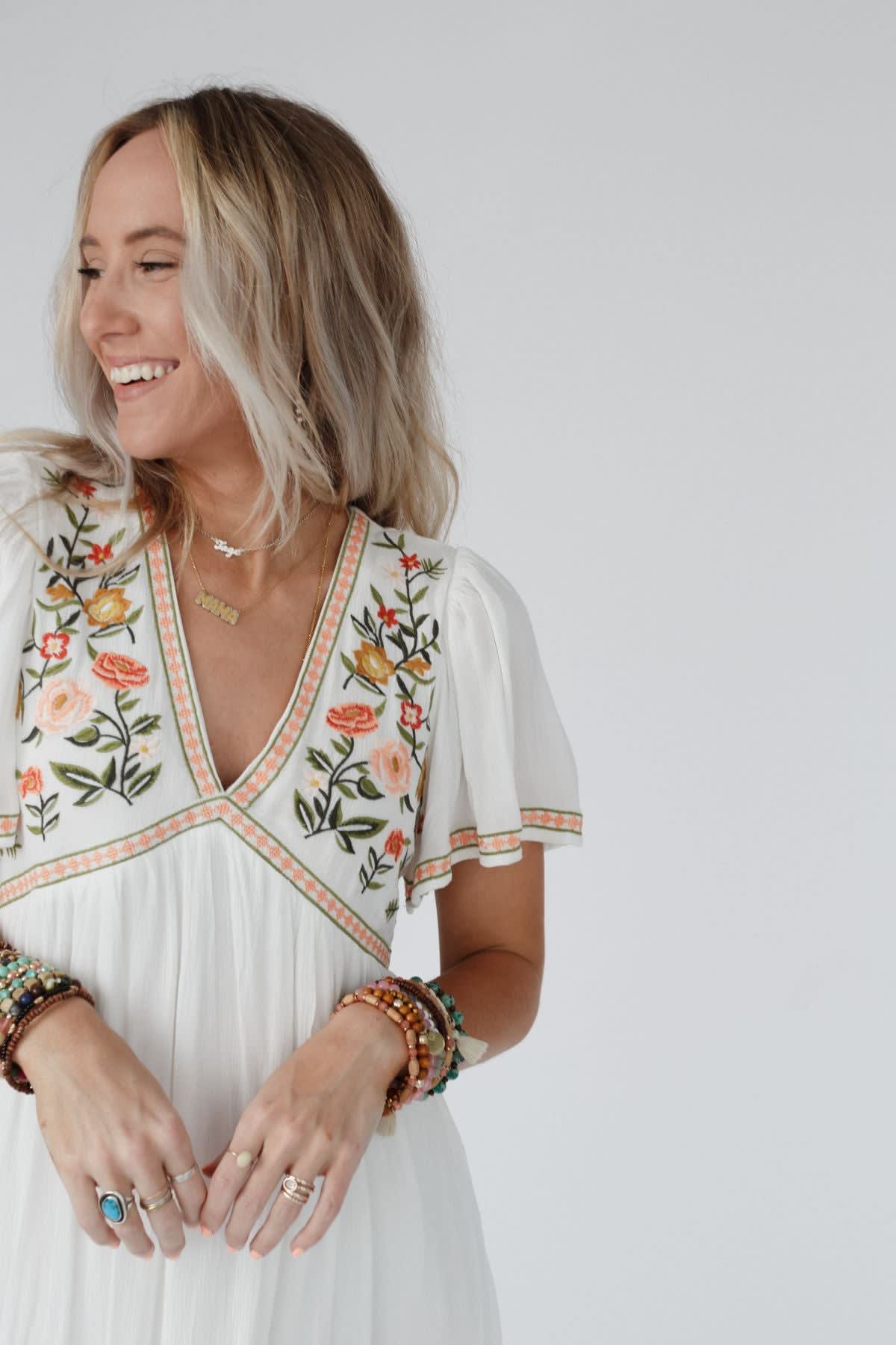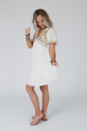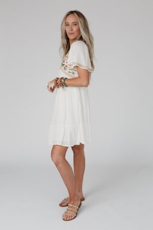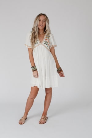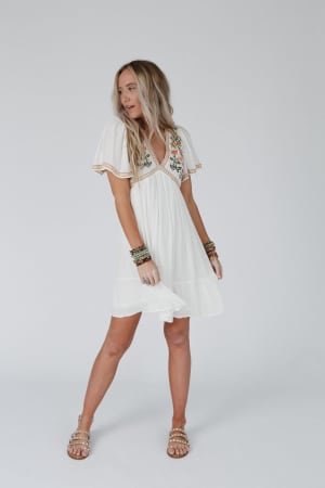 Summertime is so much better with the Magdaline Mini Dress! With a flattering babydoll silhouette, beautiful embroidery along the front chest, cute flutter sleeves, an invisible zipper closure, and a tiered skirt with a full lining, this dress is perfect for any occasion!