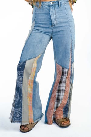 Say hello to your new favorite pants! These pants are so unique because they are featured in a comfortable denim fabric with a high rise waistline, a slouchy, flare leg silhouette, the cutest boho printed fabric panels in the pant legs for added volume, and a frayed bottom hem. Due to the fabric content there is no stretch, so consider sizing up when purchasing for the best fit - refer to the measurements below for accurate sizing.